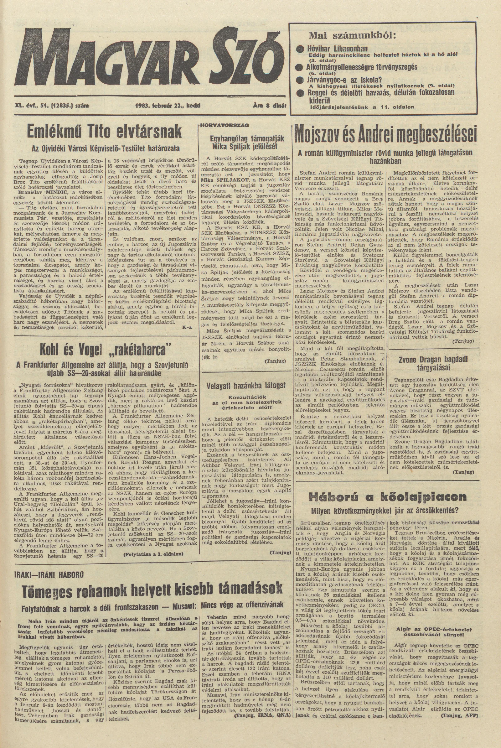 Magyar Szó, 40. évf. 1983. február 22. 51. sz. 1–20. oldal