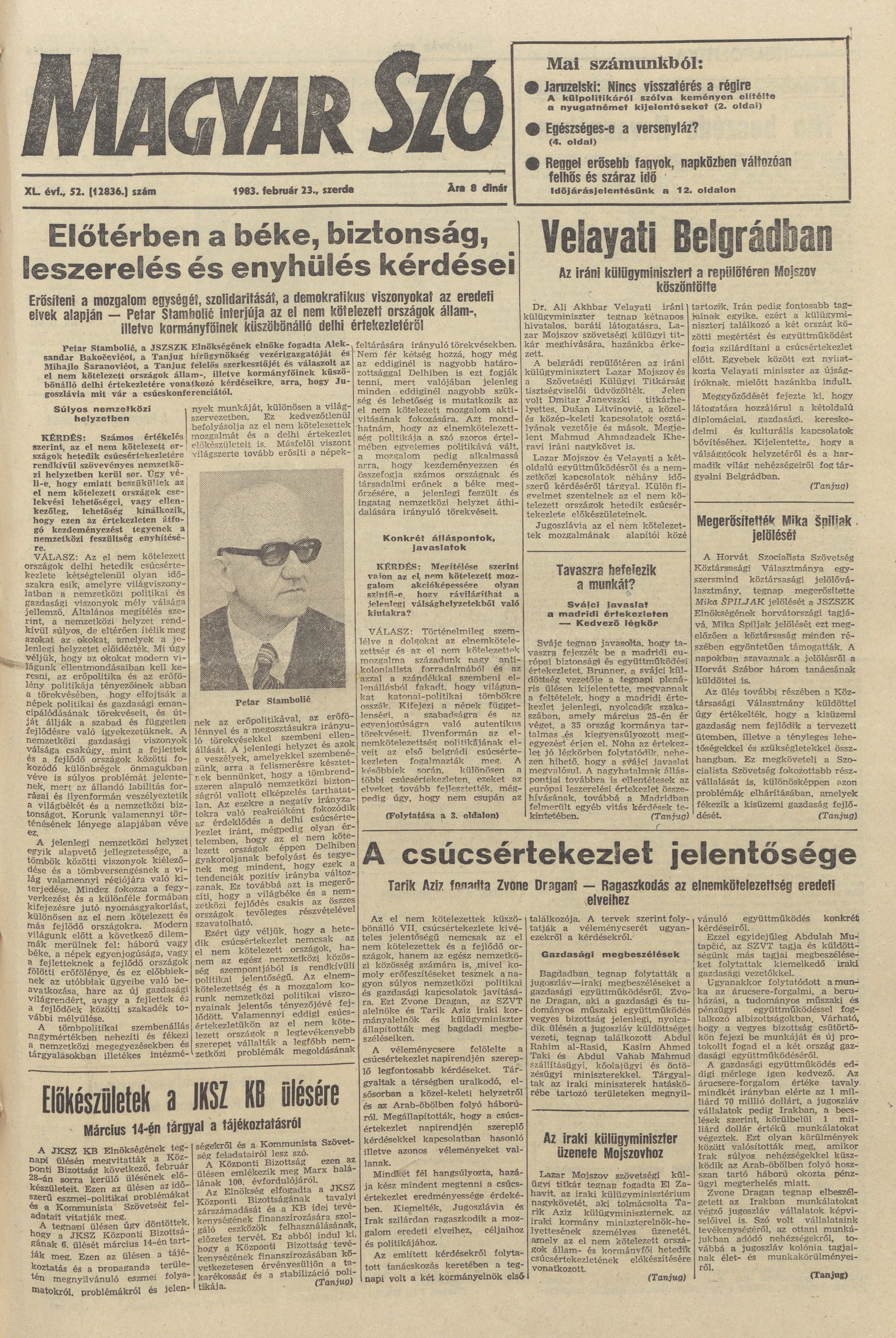 Magyar Szó, 40. évf. 1983. február 23. 52. sz. 1–24. oldal