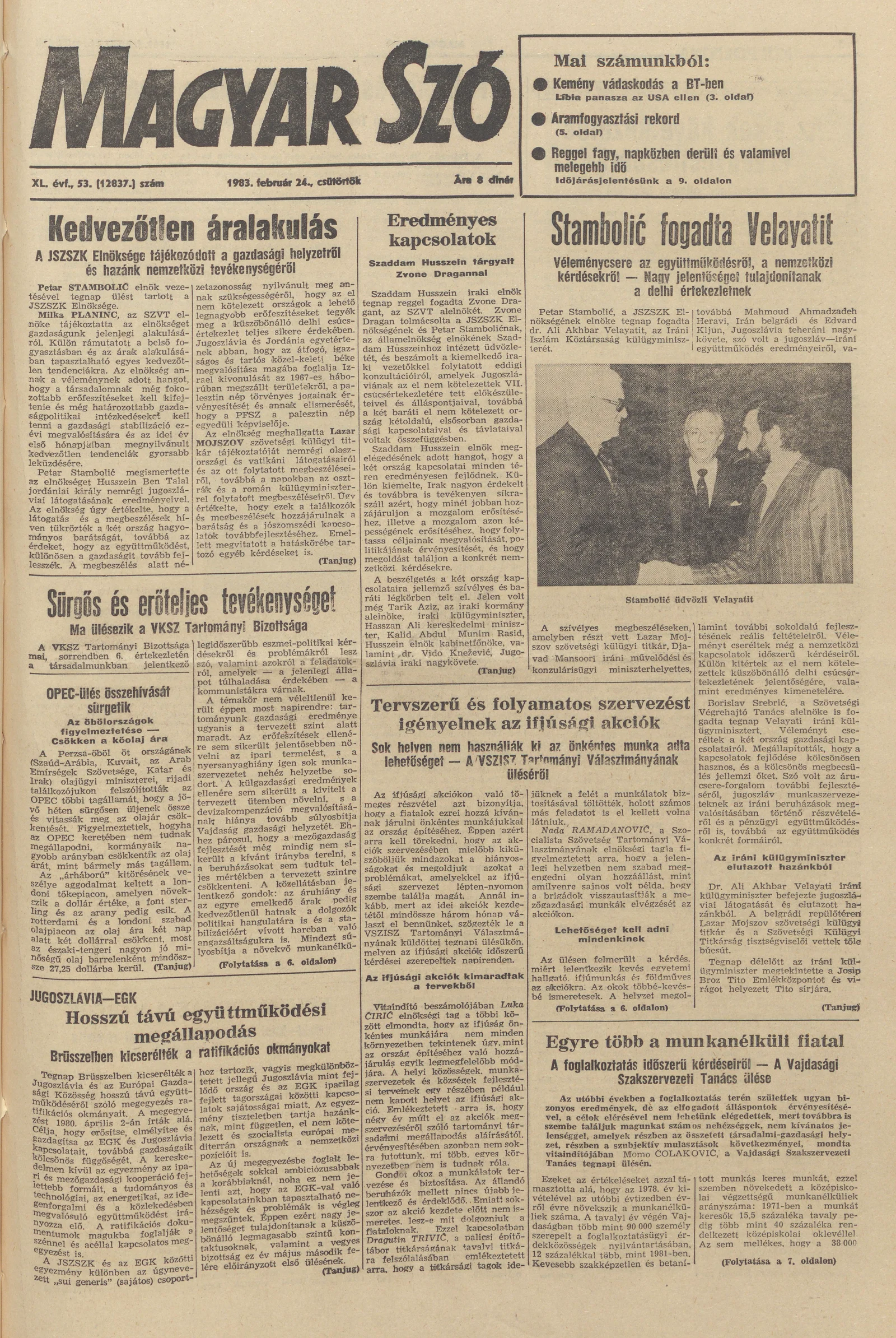 Magyar Szó, 40. évf. 1983. február 24. 53. sz. 1–24. oldal