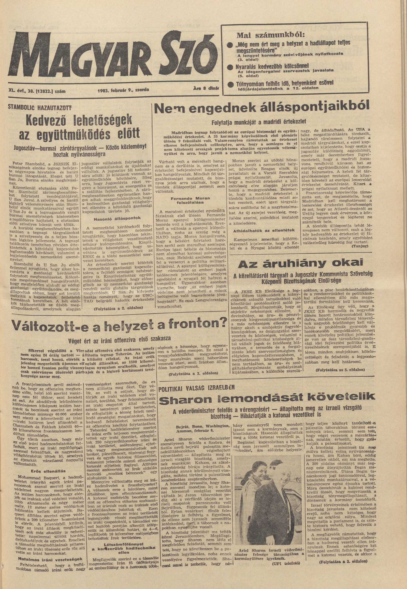 Magyar Szó, 40. évf. 1983. február 9. 38. sz. 1–24. oldal