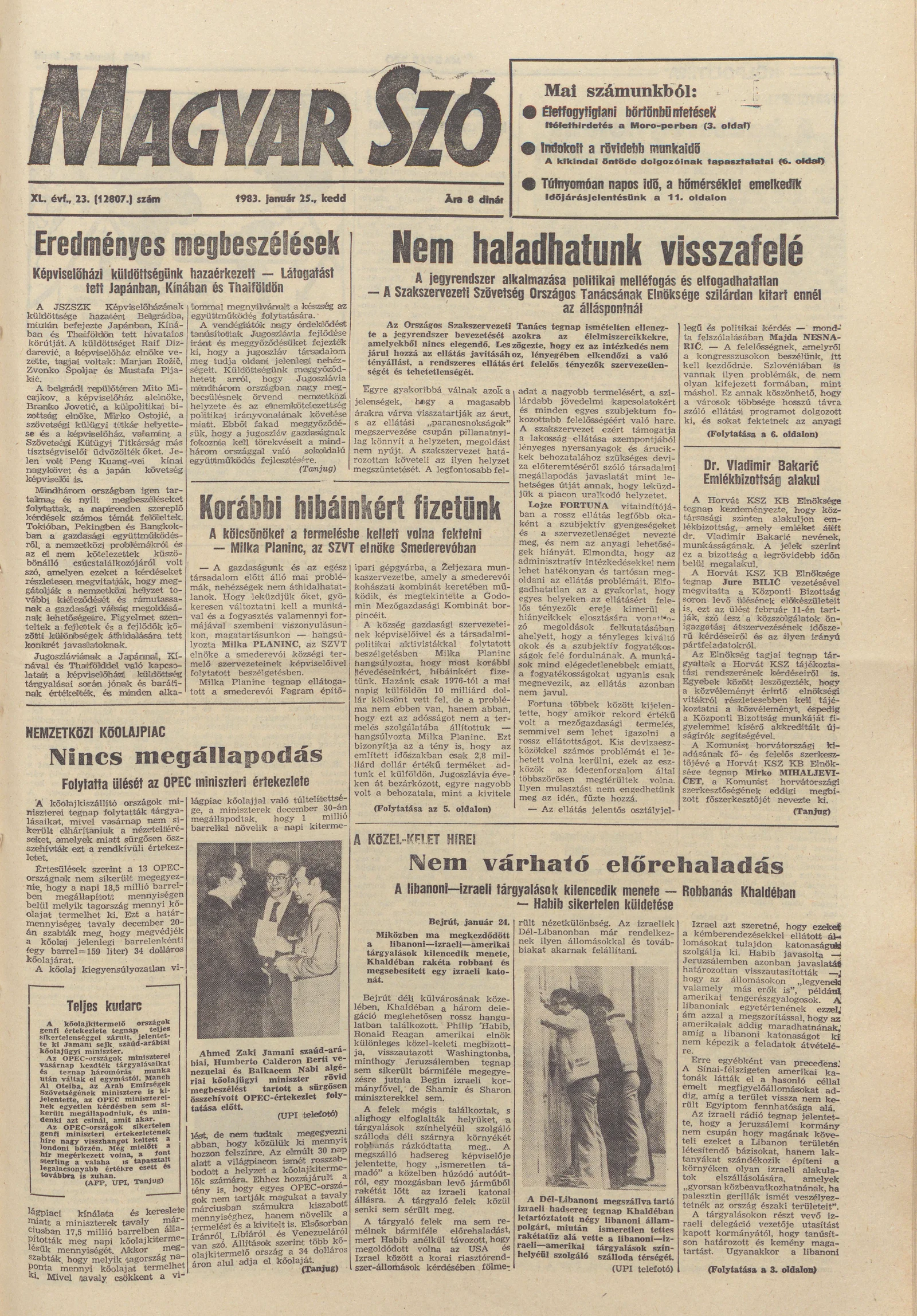 Magyar Szó, 40. évf. 1983. január 25. 23. sz. 1–20. oldal