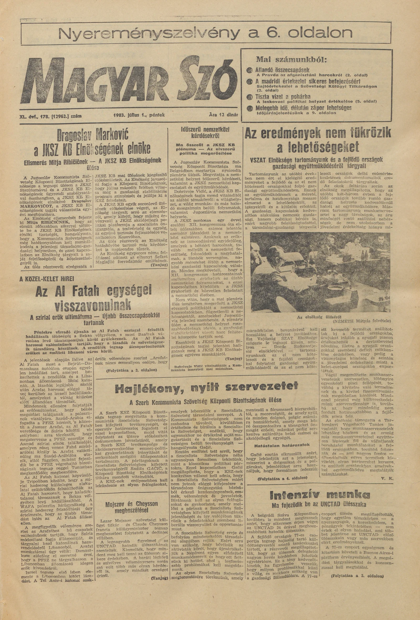 Magyar Szó, 40. évf. 1983. július 1. 178. sz. 1–20. oldal