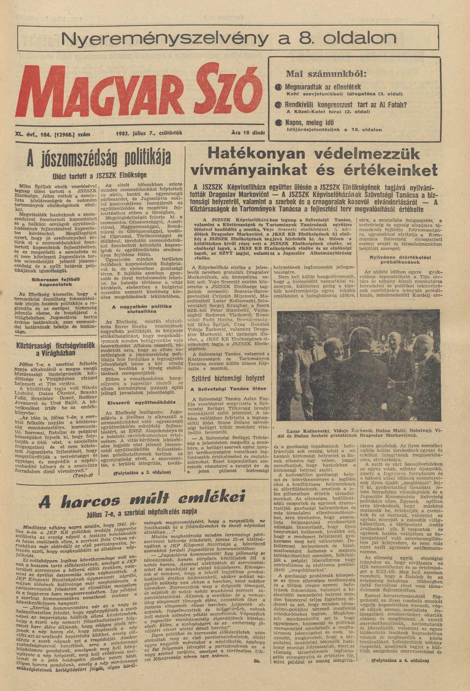 Magyar Szó, 40. évf. 1983. július 7. 184. sz. 1–20. oldal
