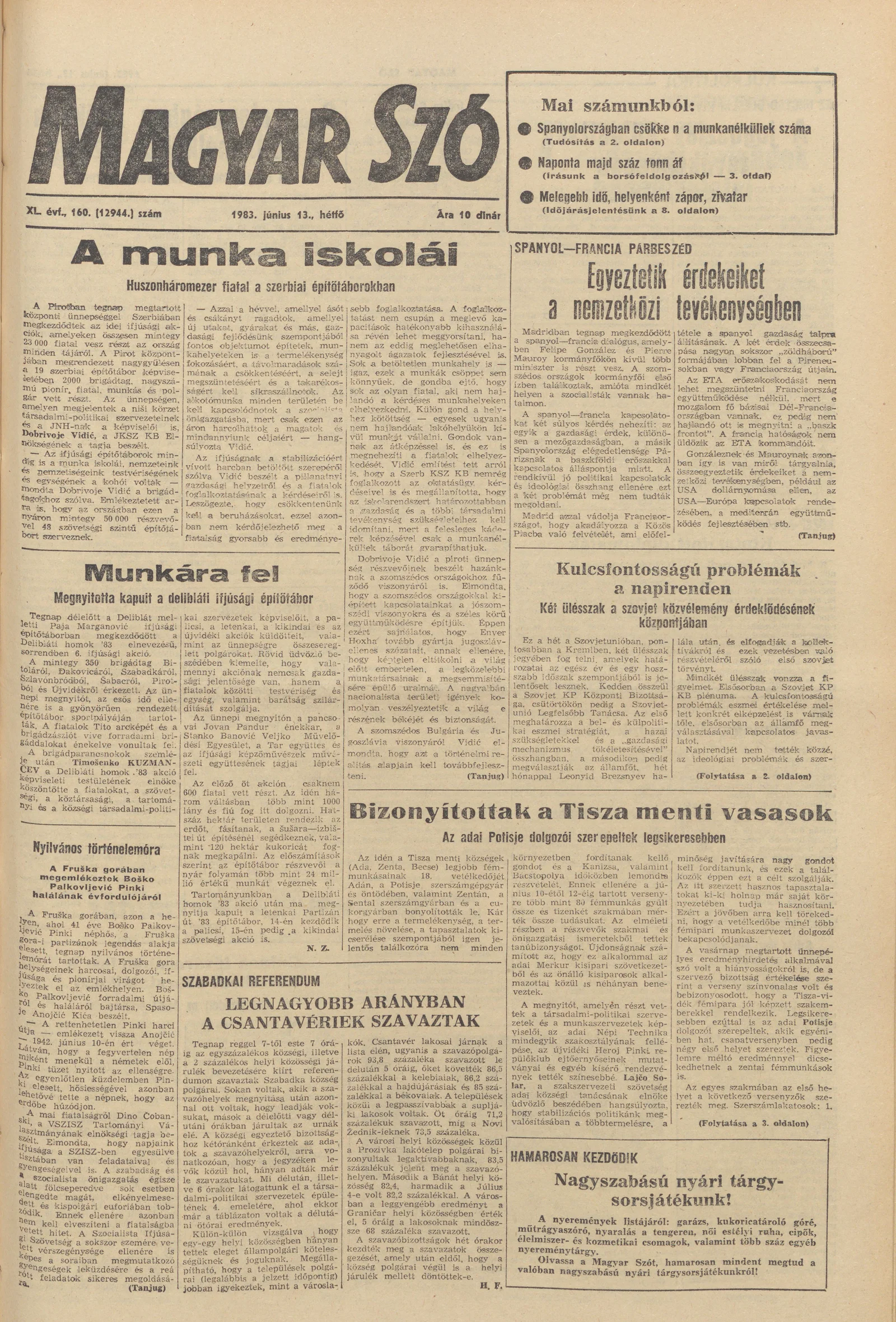 Magyar Szó, 40. évf. 1983. június 13. 160. sz. 1–16. oldal