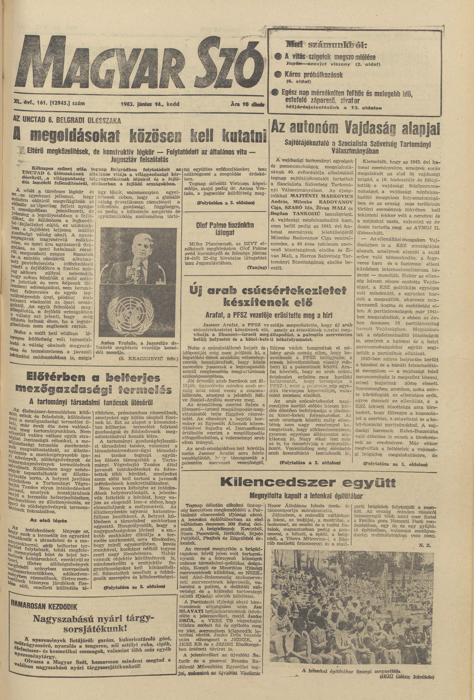 Magyar Szó, 40. évf. 1983. június 14. 161. sz. 1–20. oldal