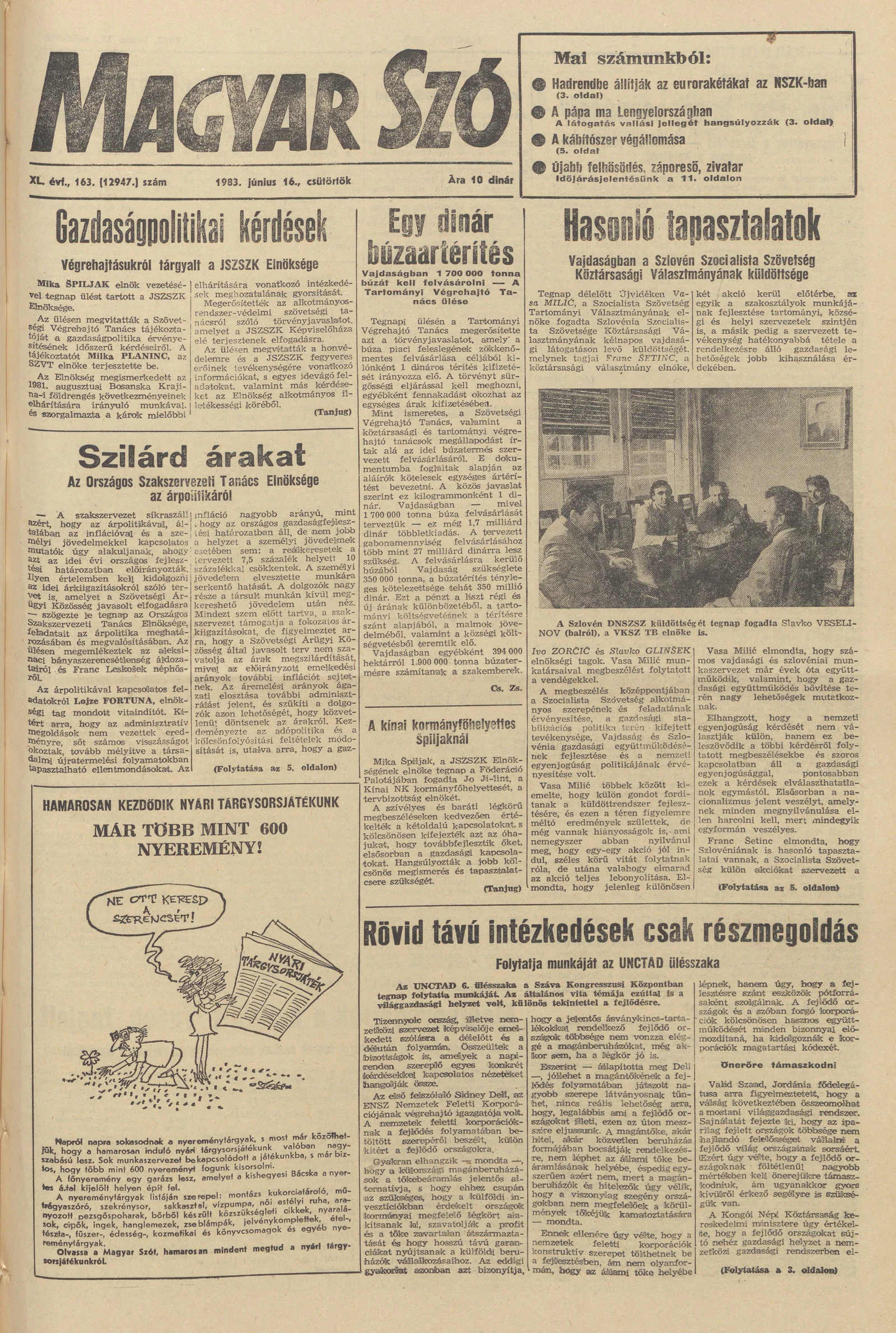 Magyar Szó, 40. évf. 1983. június 16. 163. sz. 1–24. oldal