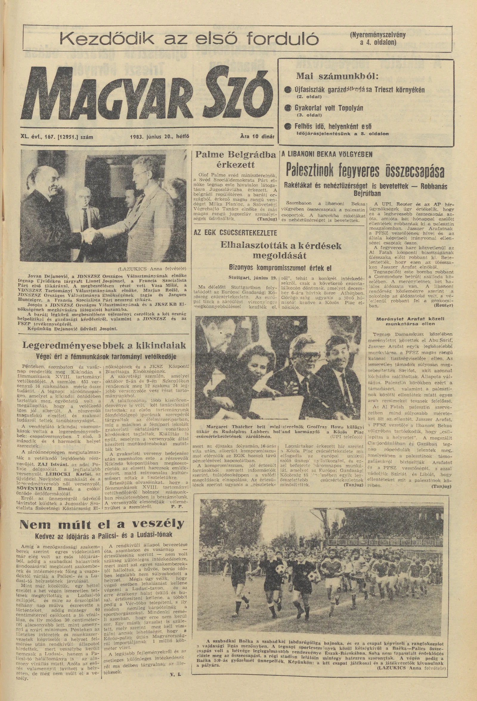 Magyar Szó, 40. évf. 1983. június 20. 167. sz. 1–16. oldal
