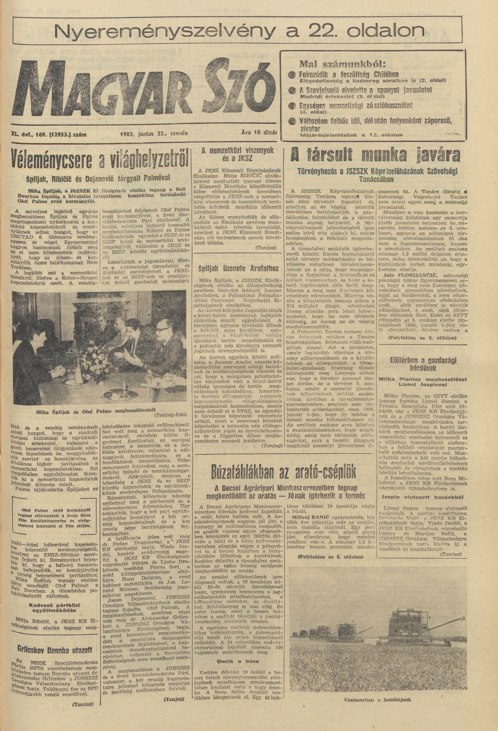 Magyar Szó, 40. évf. 1983. június 22. 169. sz. 1–24. oldal
