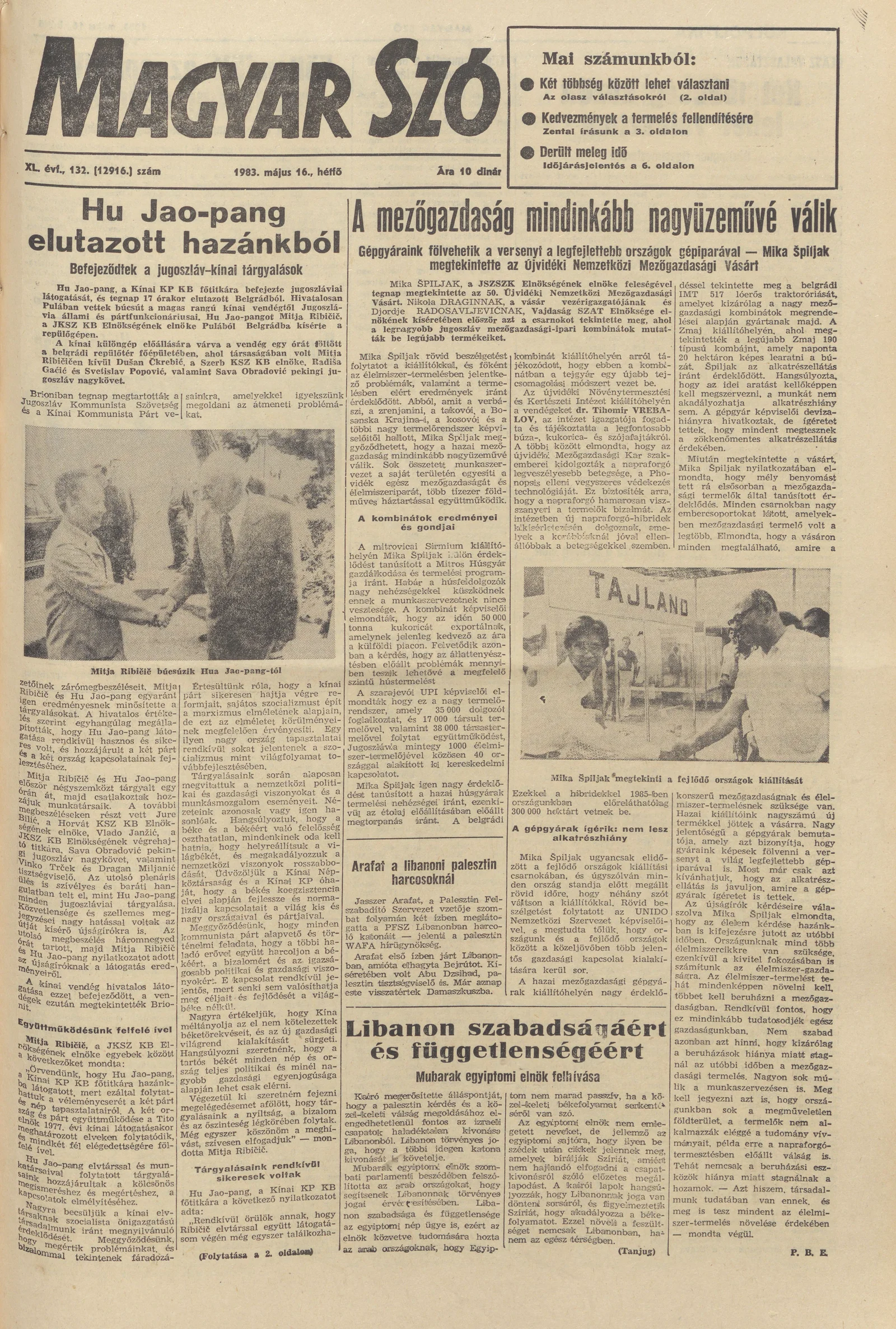 Magyar Szó, 40. évf. 1983. május 16. 133. sz. 1–20. oldal