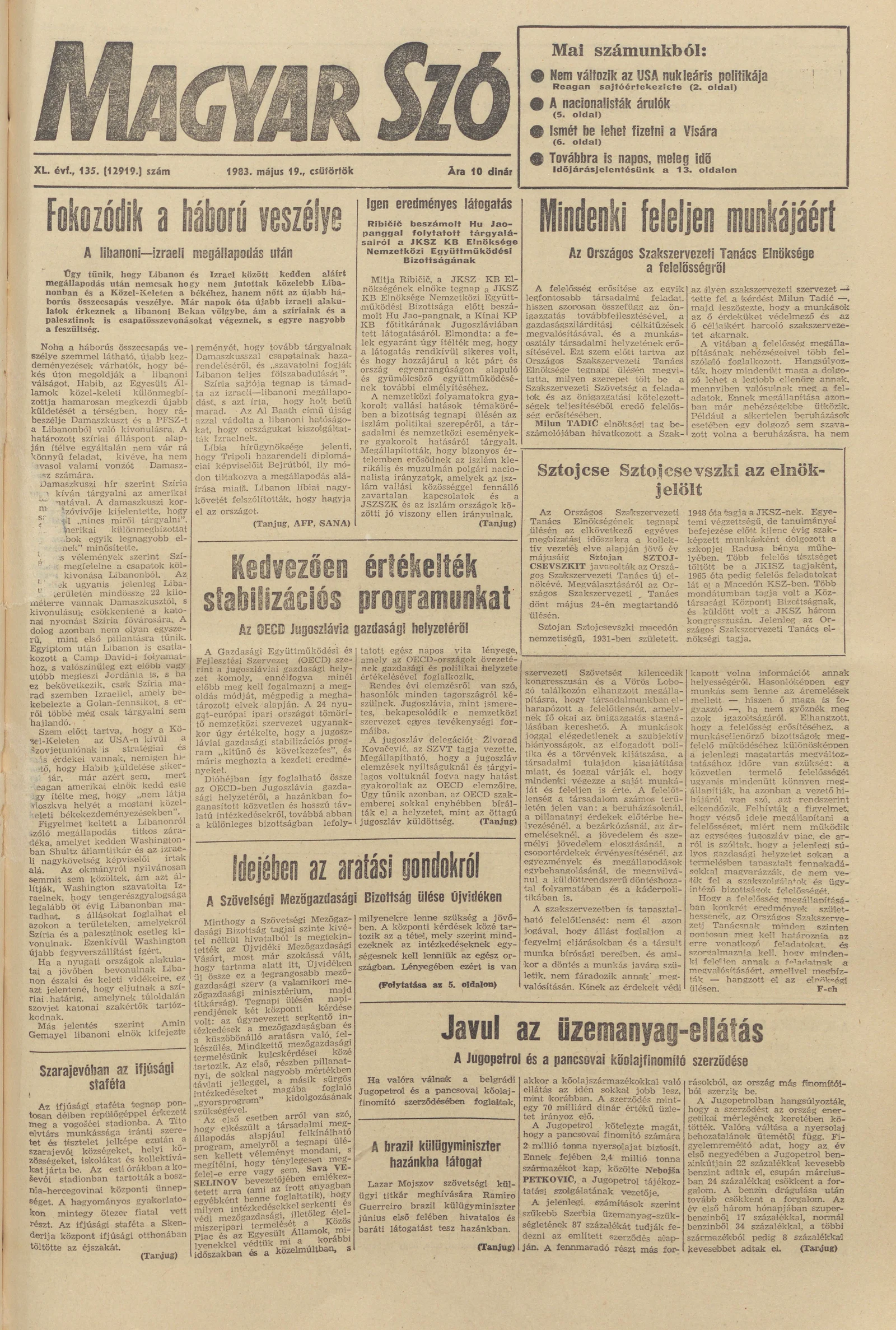 Magyar Szó, 40. évf. 1983. május 19. 135. sz. 1–32. oldal
