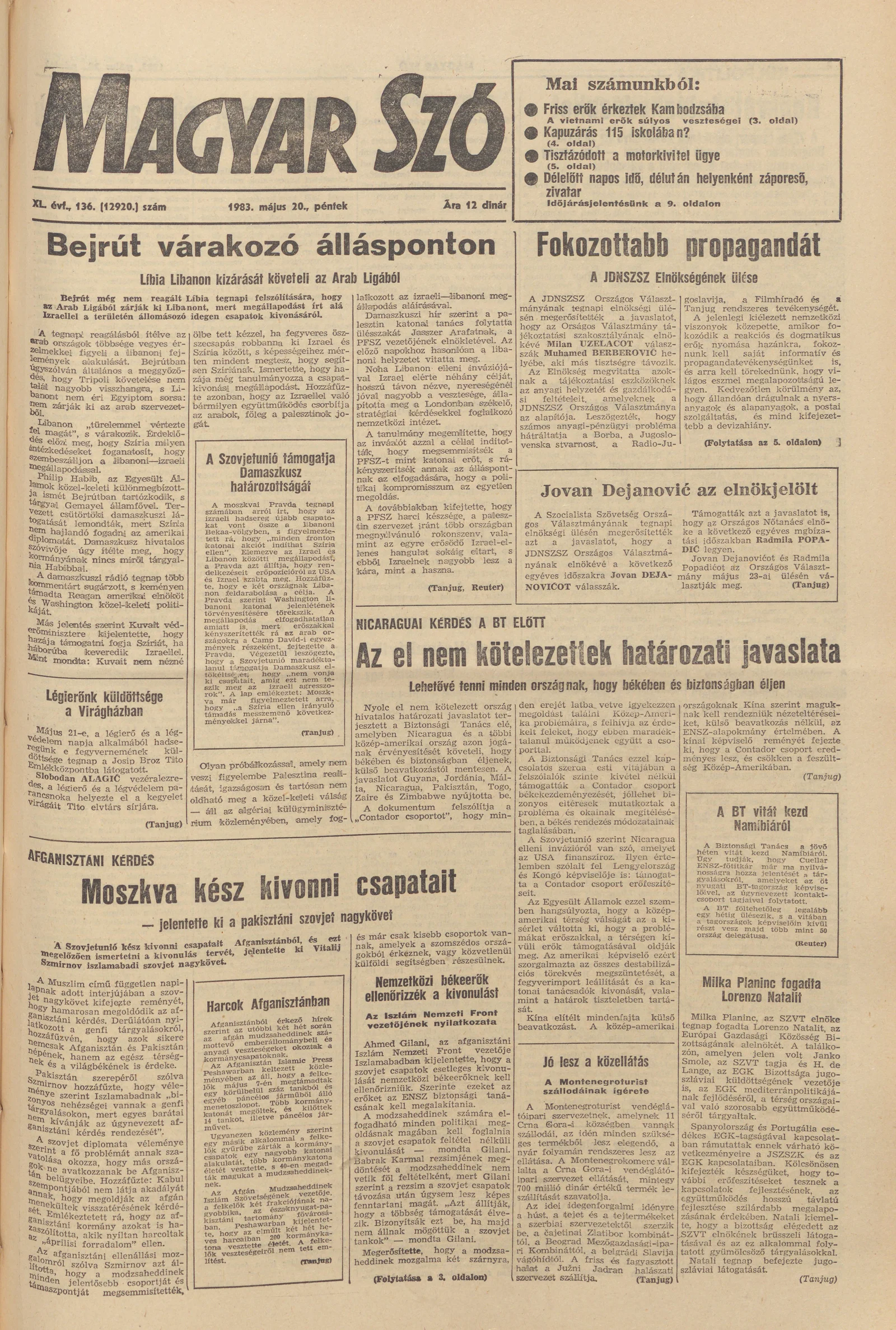 Magyar Szó, 40. évf. 1983. május 20. 136. sz. 1–20. oldal