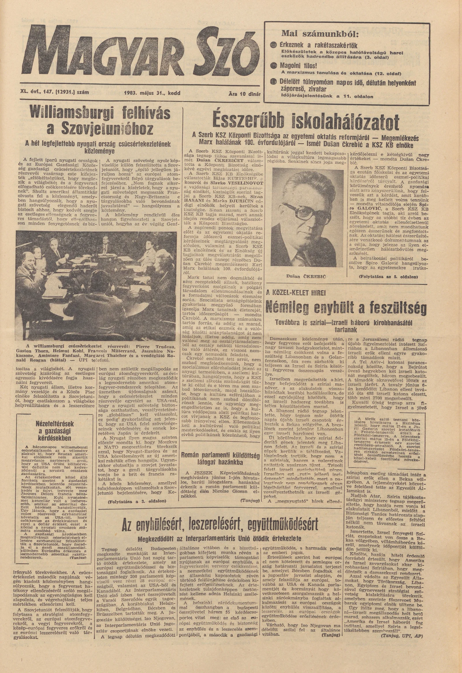 Magyar Szó, 40. évf. 1983. május 31. 147. sz. 1–20. oldal