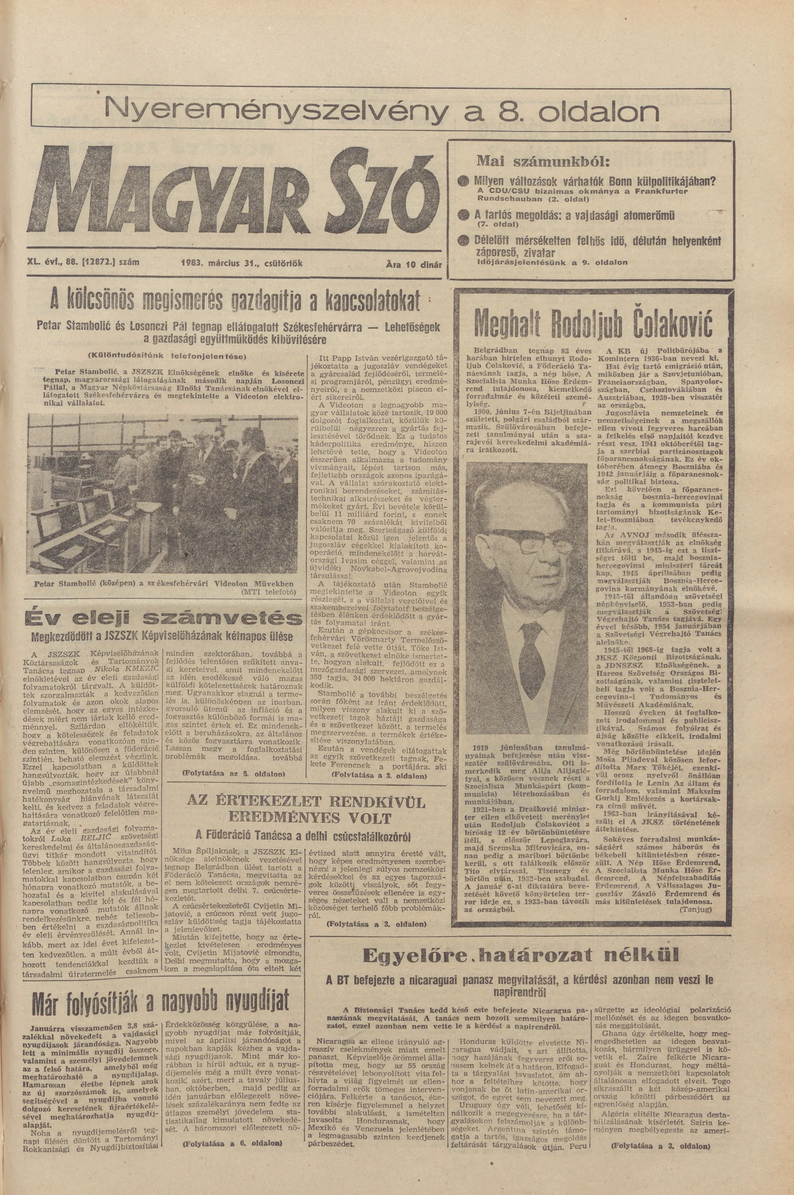 Magyar Szó, 40. évf. 1983. március 31. 88. sz. 1–24. oldal