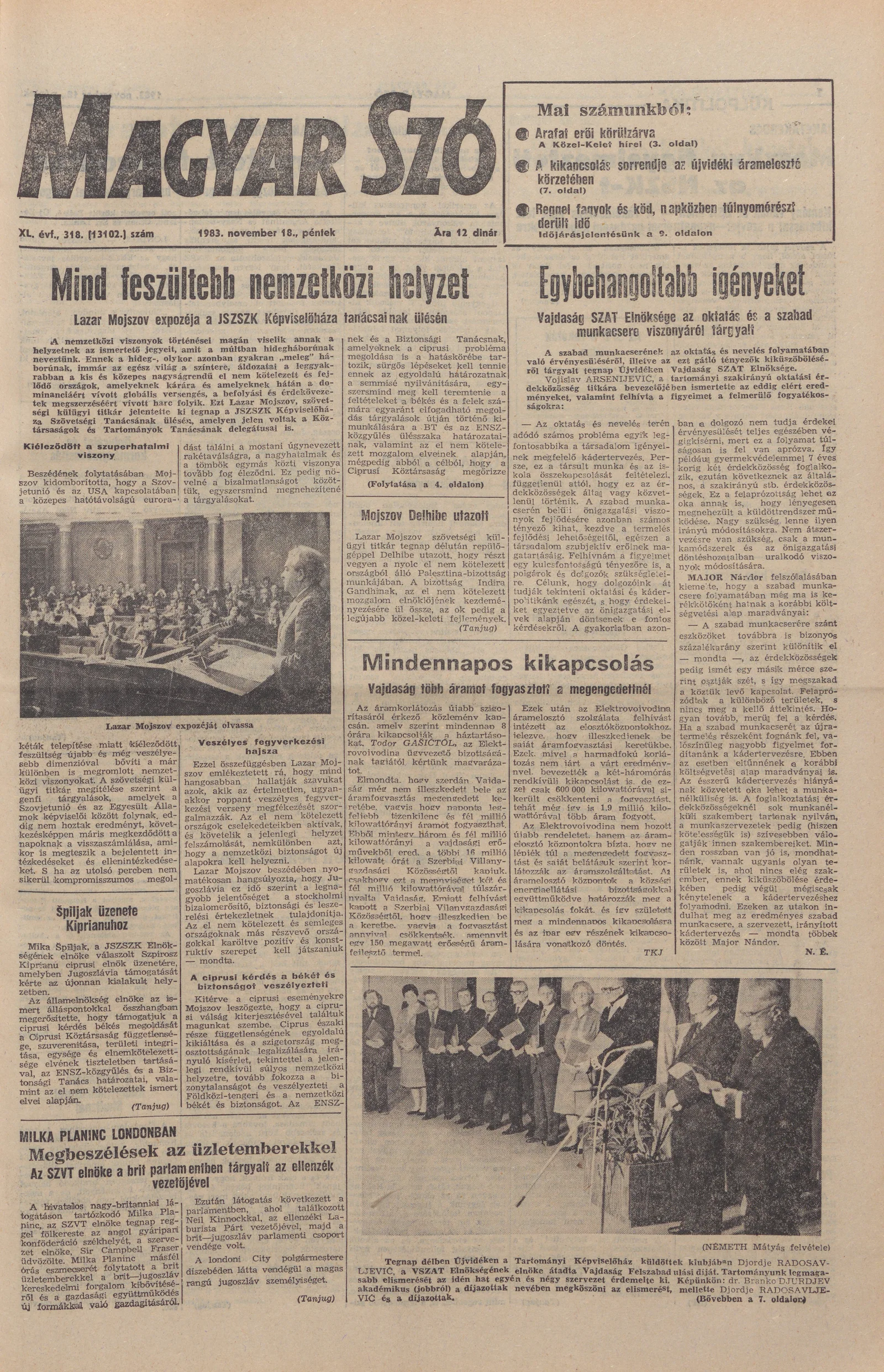 Magyar Szó, 40. évf. 1983. november 18. 318. sz.