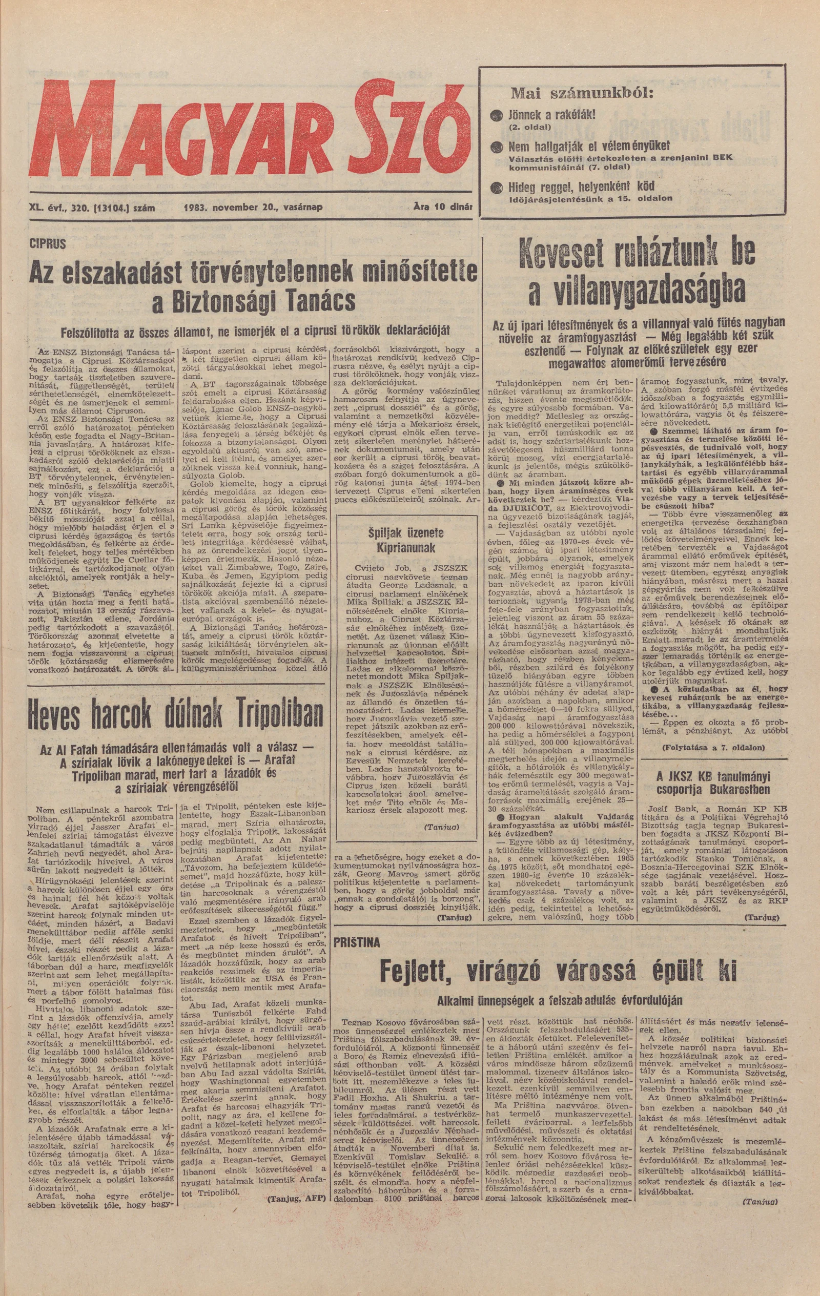 Magyar Szó, 40. évf. 1983. november 20. 320. sz.