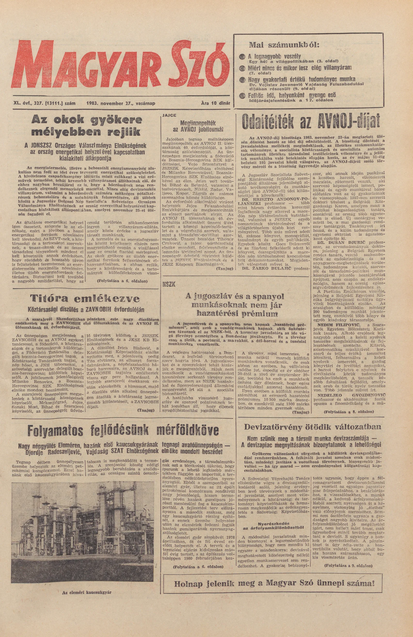 Magyar Szó, 40. évf. 1983. november 27. 327. sz.