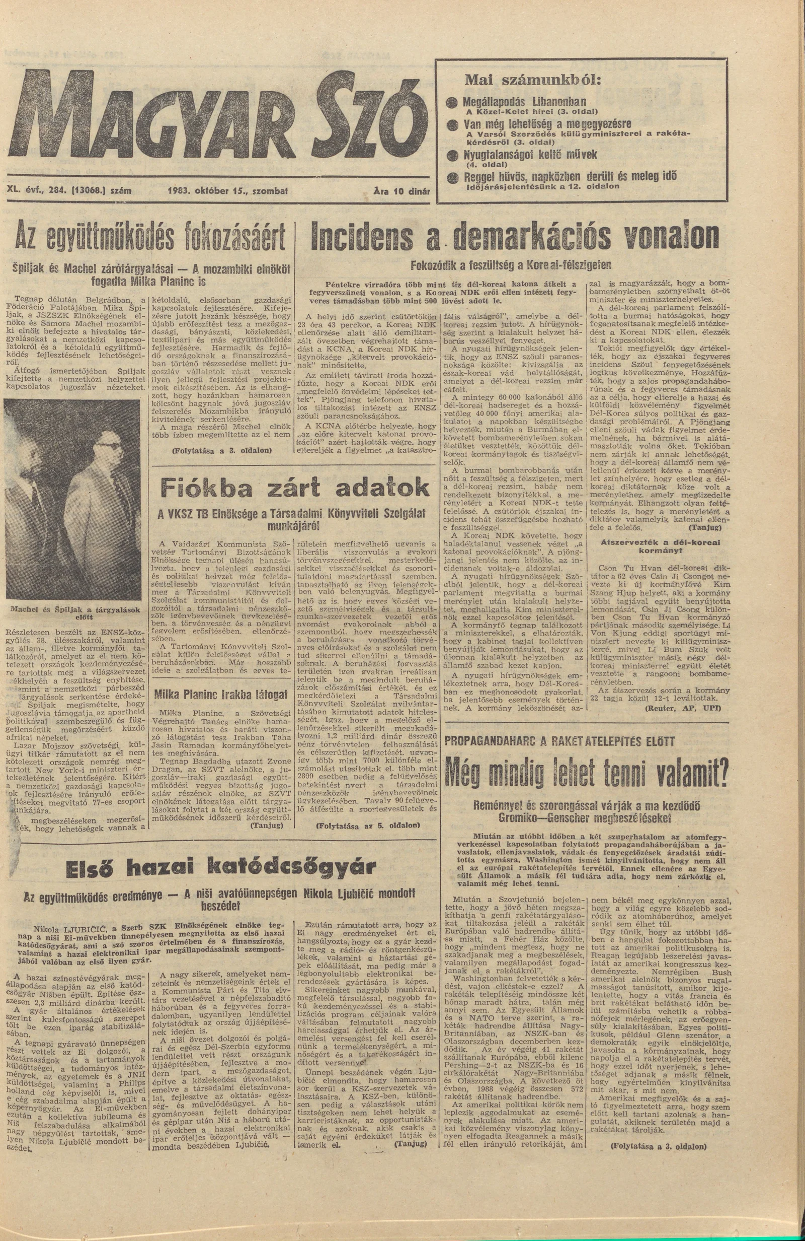 Magyar Szó, 40. évf. 1983. október 15. 284. sz.