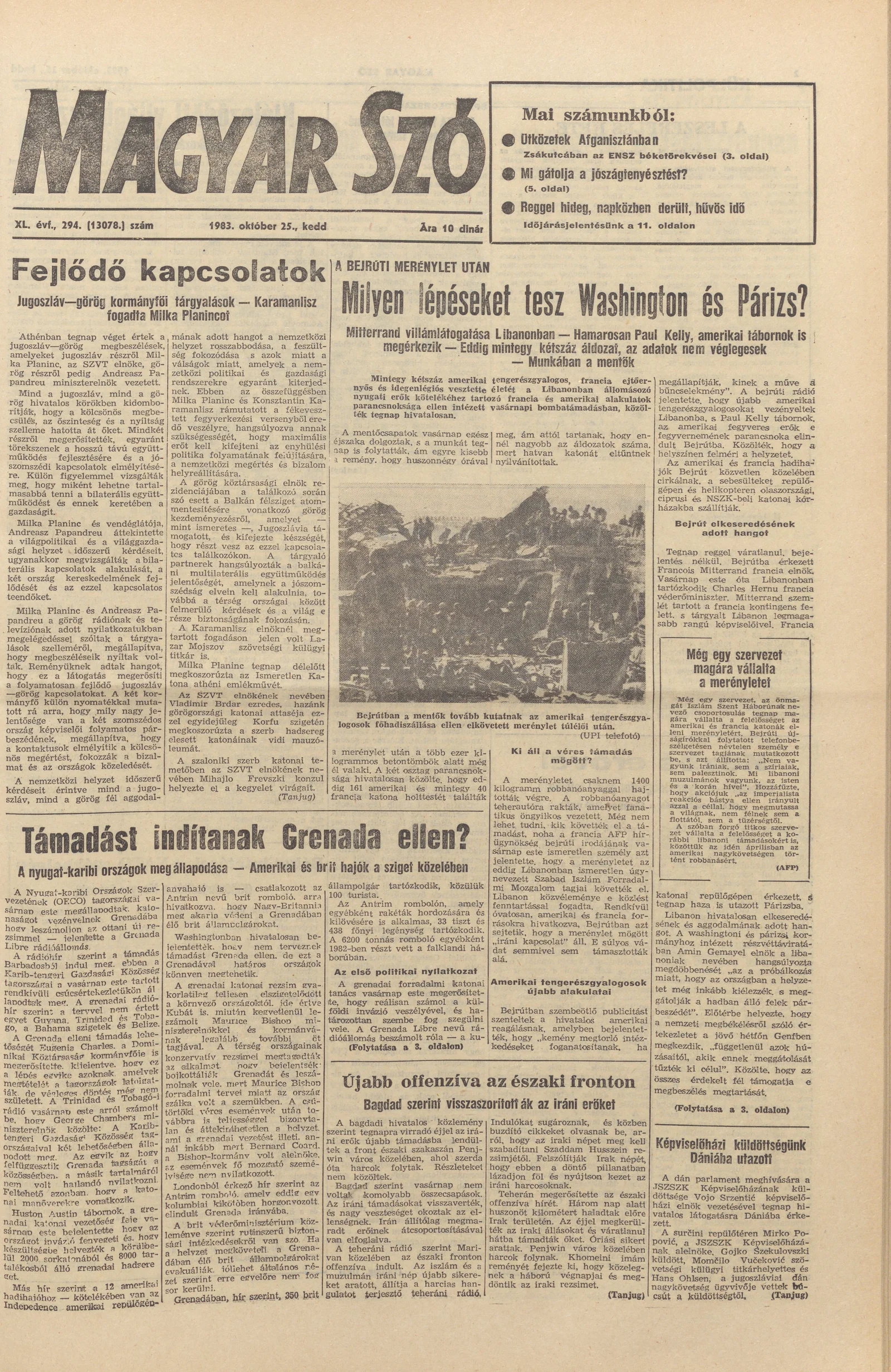Magyar Szó, 40. évf. 1983. október 25. 294. sz.