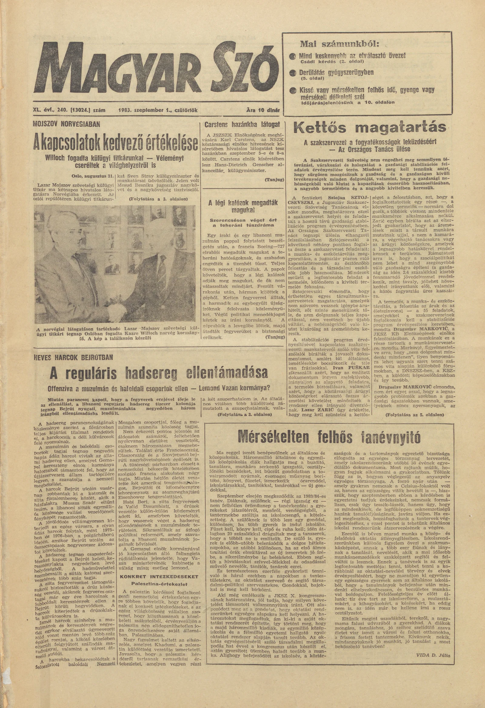 Magyar Szó, 40. évf. 1983. szeptember 1. 240. sz. 1–20. oldal
