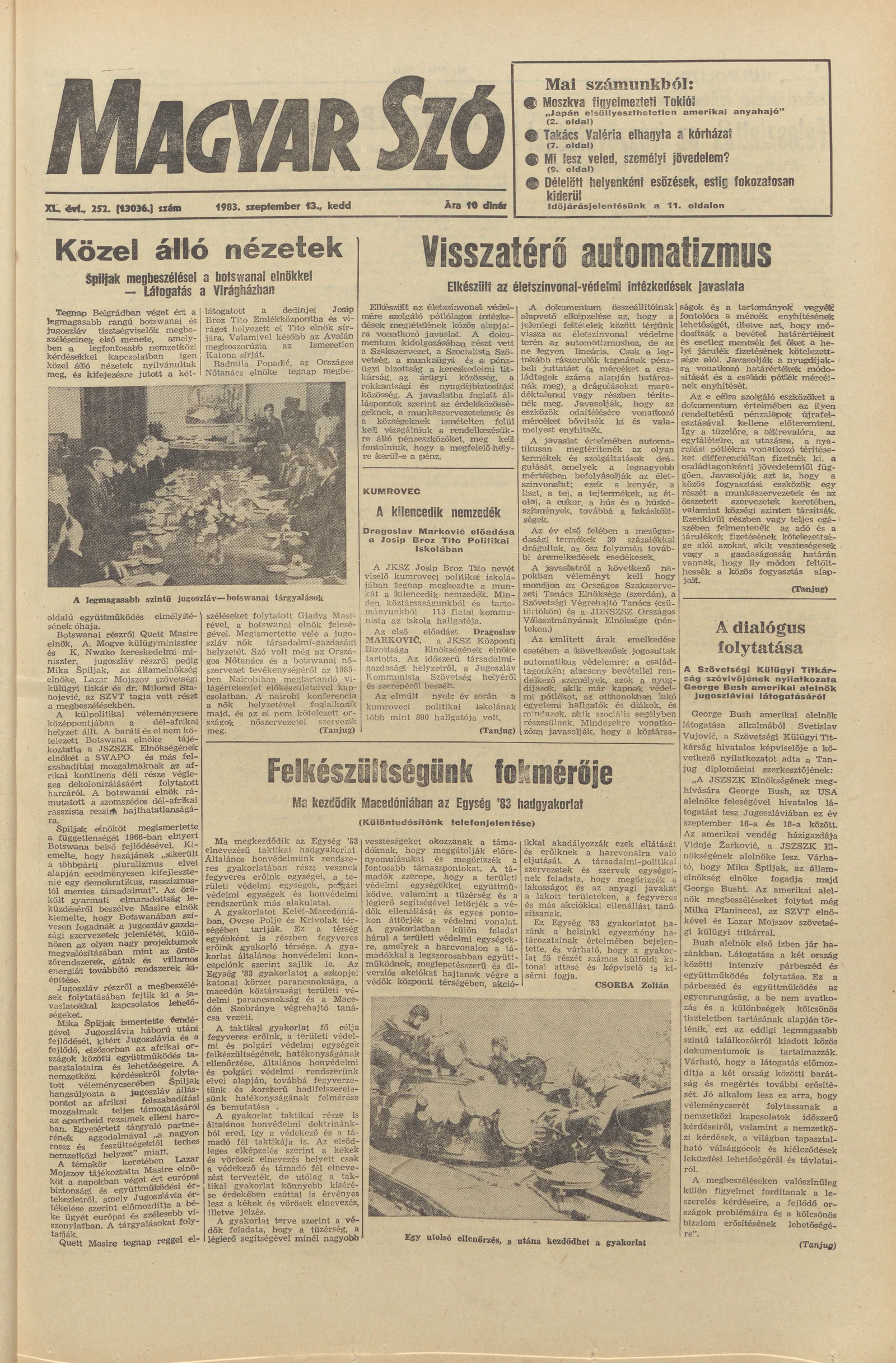 Magyar Szó, 40. évf. 1983. szeptember 13. 252. sz.
