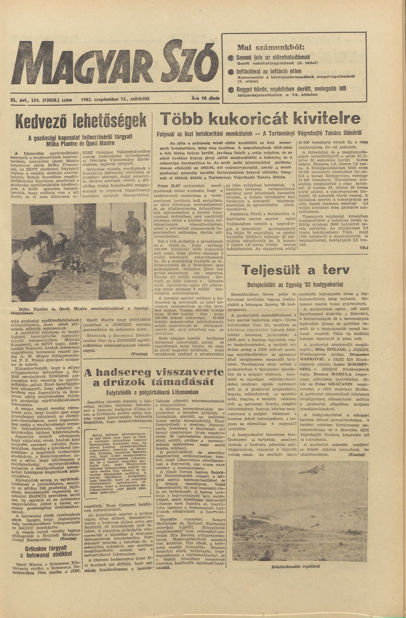 Magyar Szó, 40. évf. 1983. szeptember 15. 254. sz.