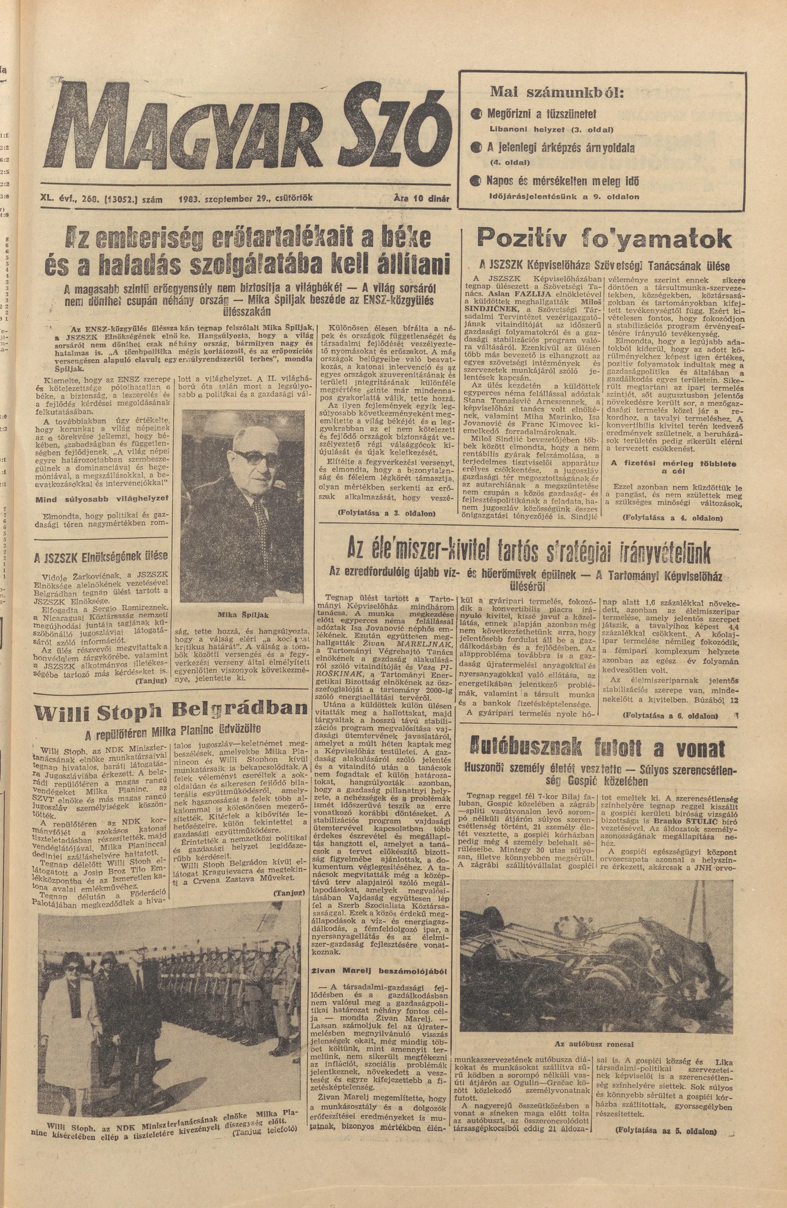 Magyar Szó, 40. évf. 1983. szeptember 29. 268. sz.