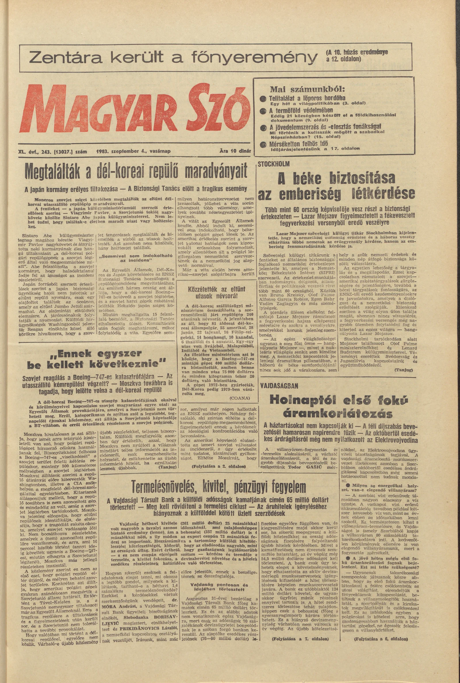 Magyar Szó, 40. évf. 1983. szeptember 4. 243. sz.