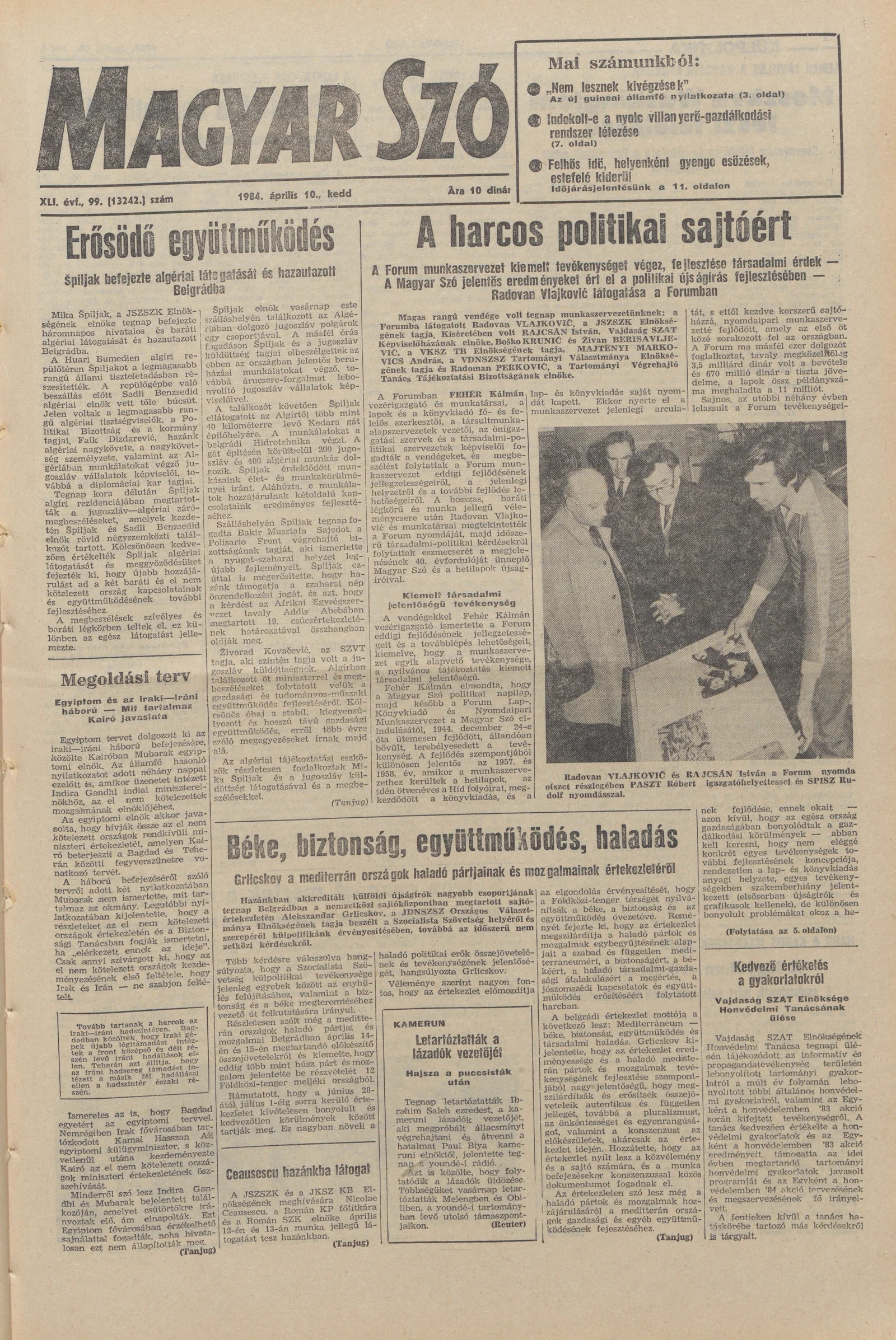 Magyar Szó, 41. évf. 1984. április 10. 99. sz. 1–20. oldal