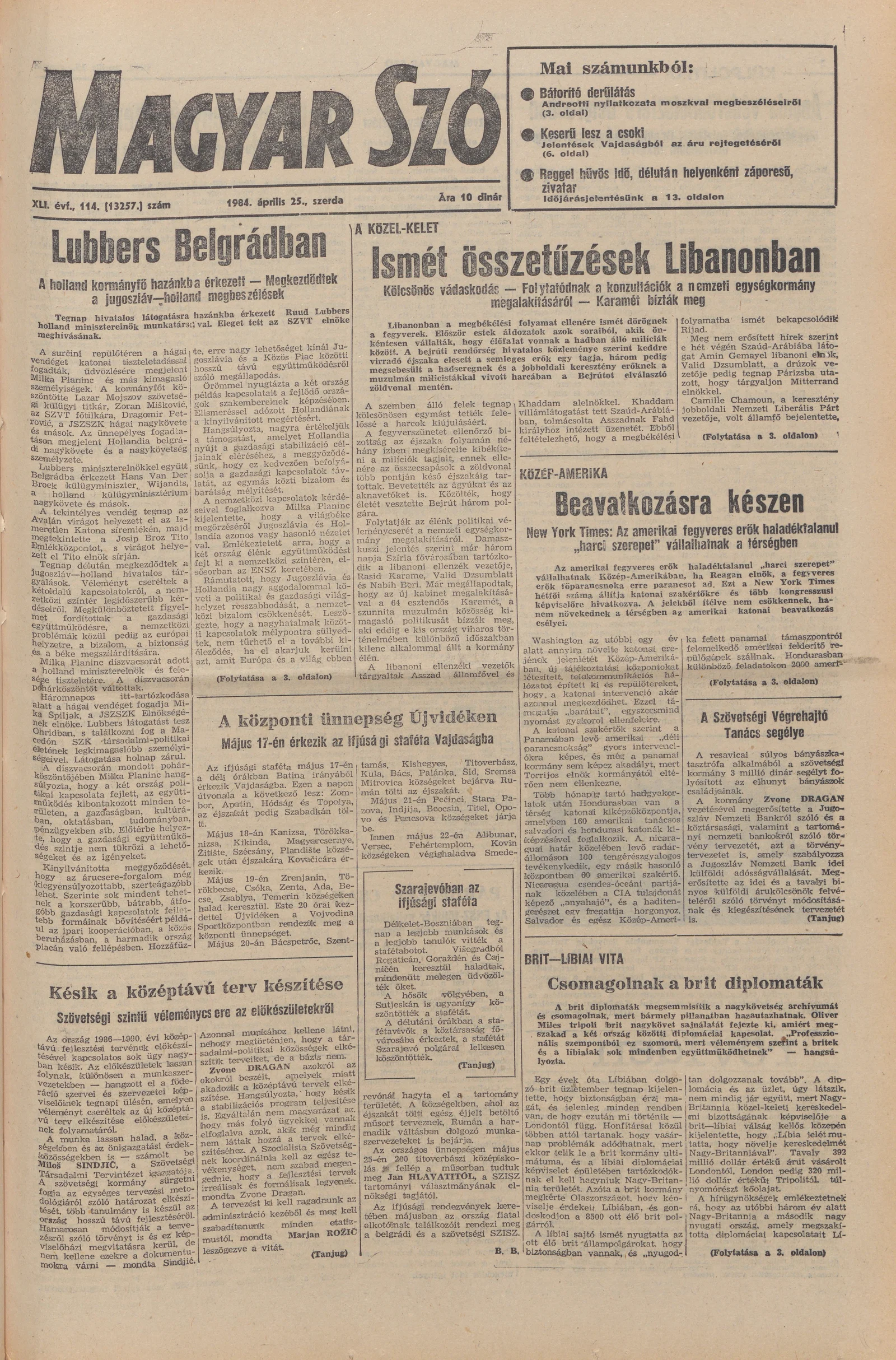 Magyar Szó, 41. évf. 1984. április 25. 114. sz. 1–24. oldal