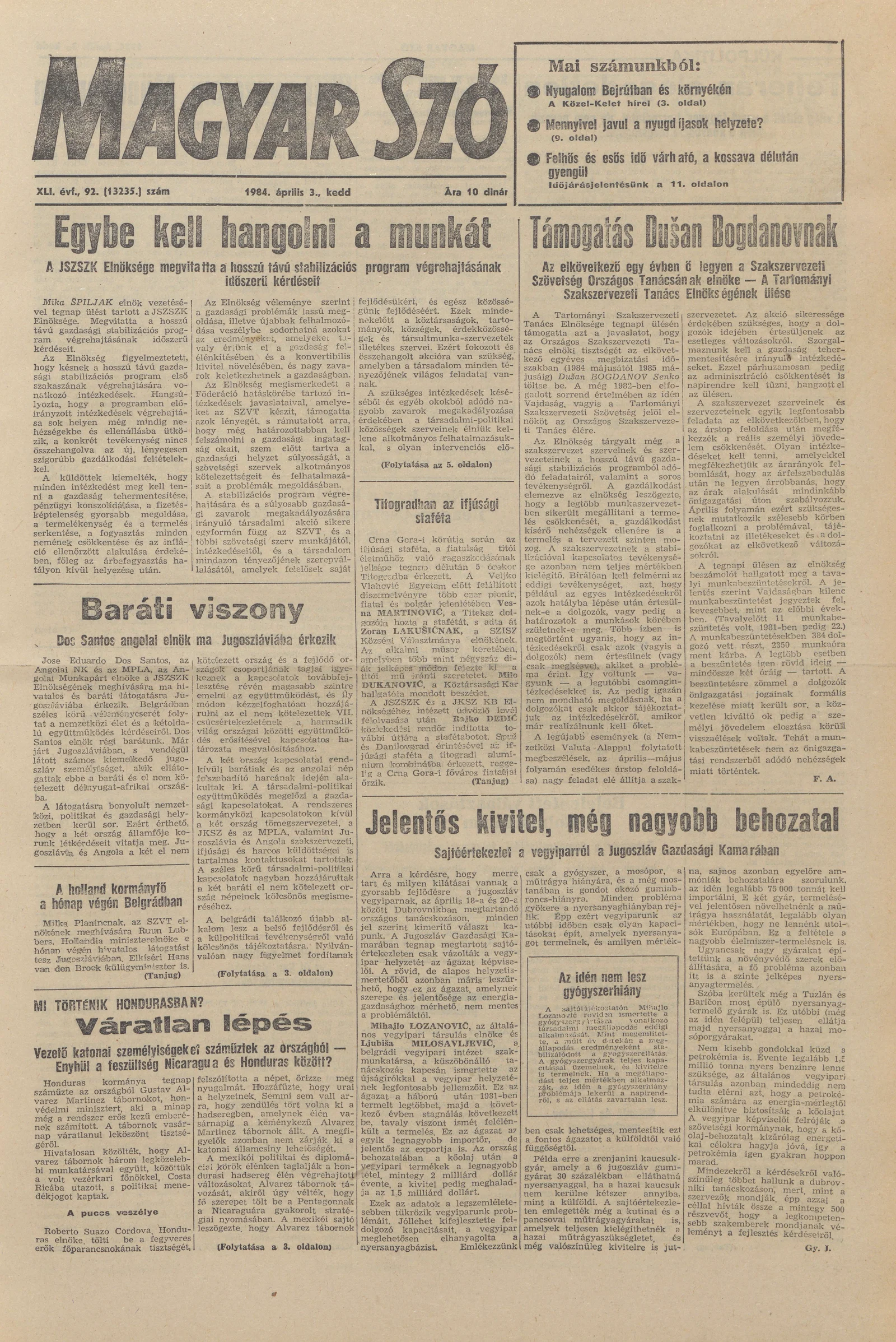 Magyar Szó, 41. évf. 1984. április 3. 92. sz. 1–20. oldal