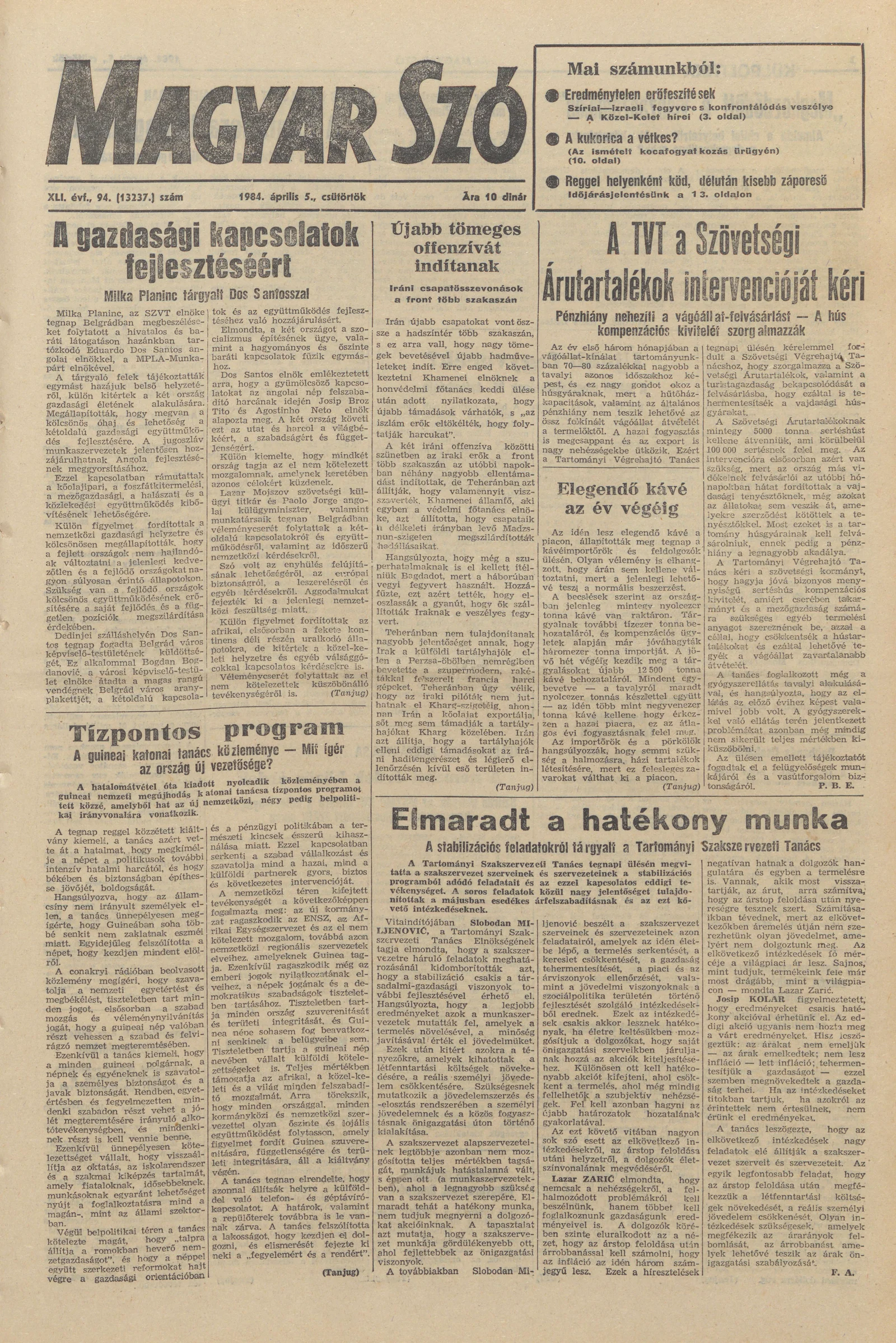 Magyar Szó, 41. évf. 1984. április 5. 94. sz. 1–20. oldal
