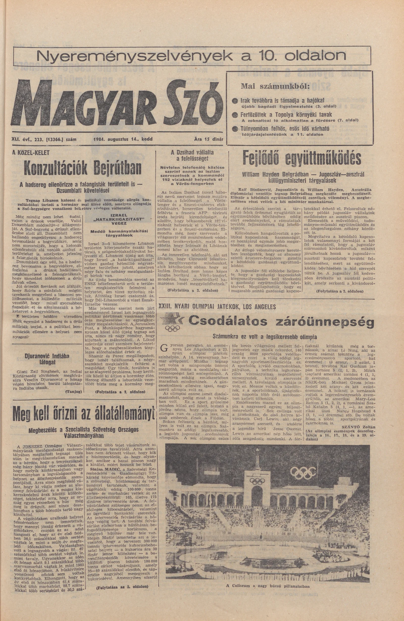 Magyar Szó, 41. évf. 1984. augusztus 14. 223. sz. 1–20. oldal