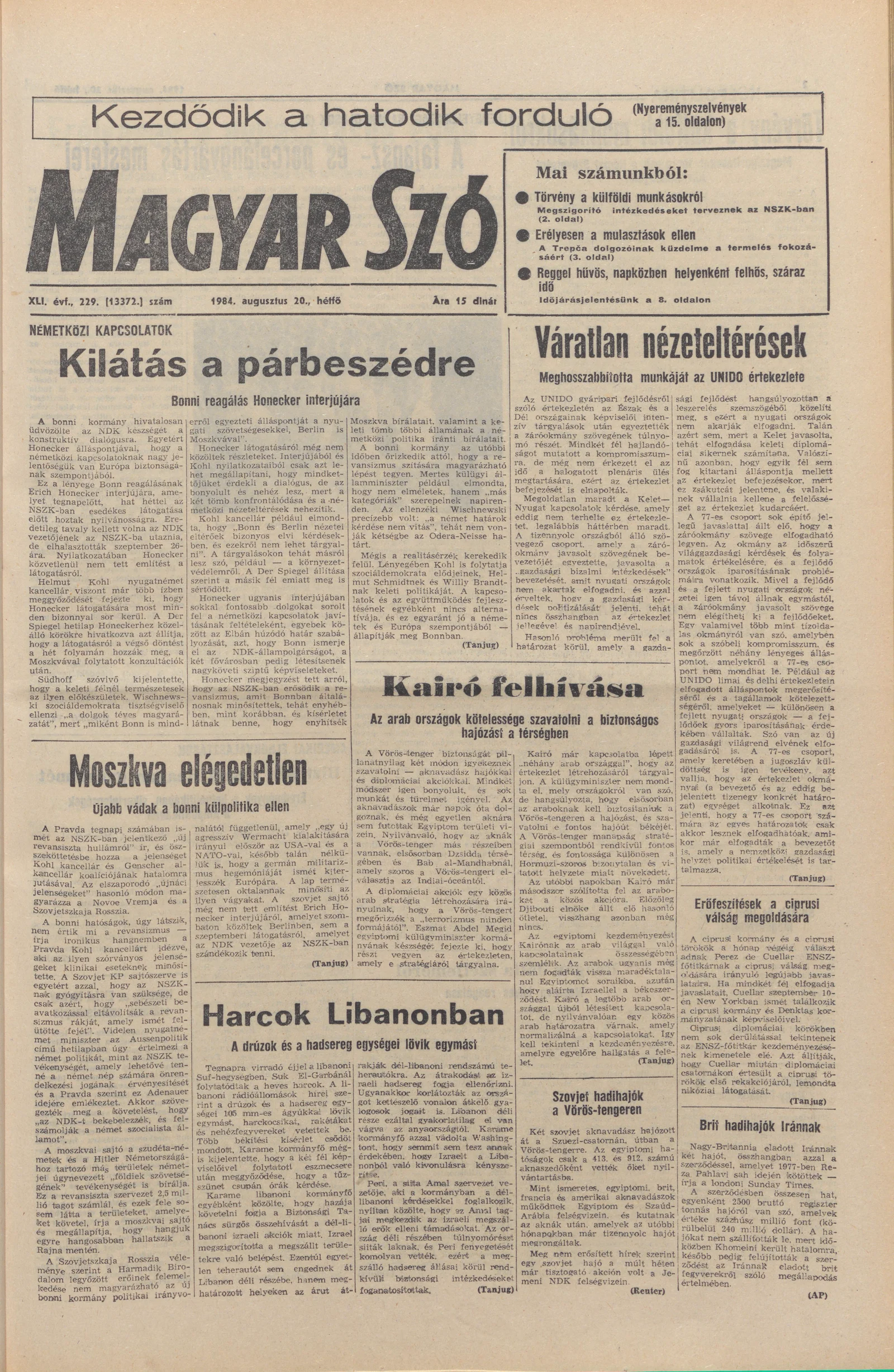 Magyar Szó, 41. évf. 1984. augusztus 20. 229. sz. 1–8. oldal
