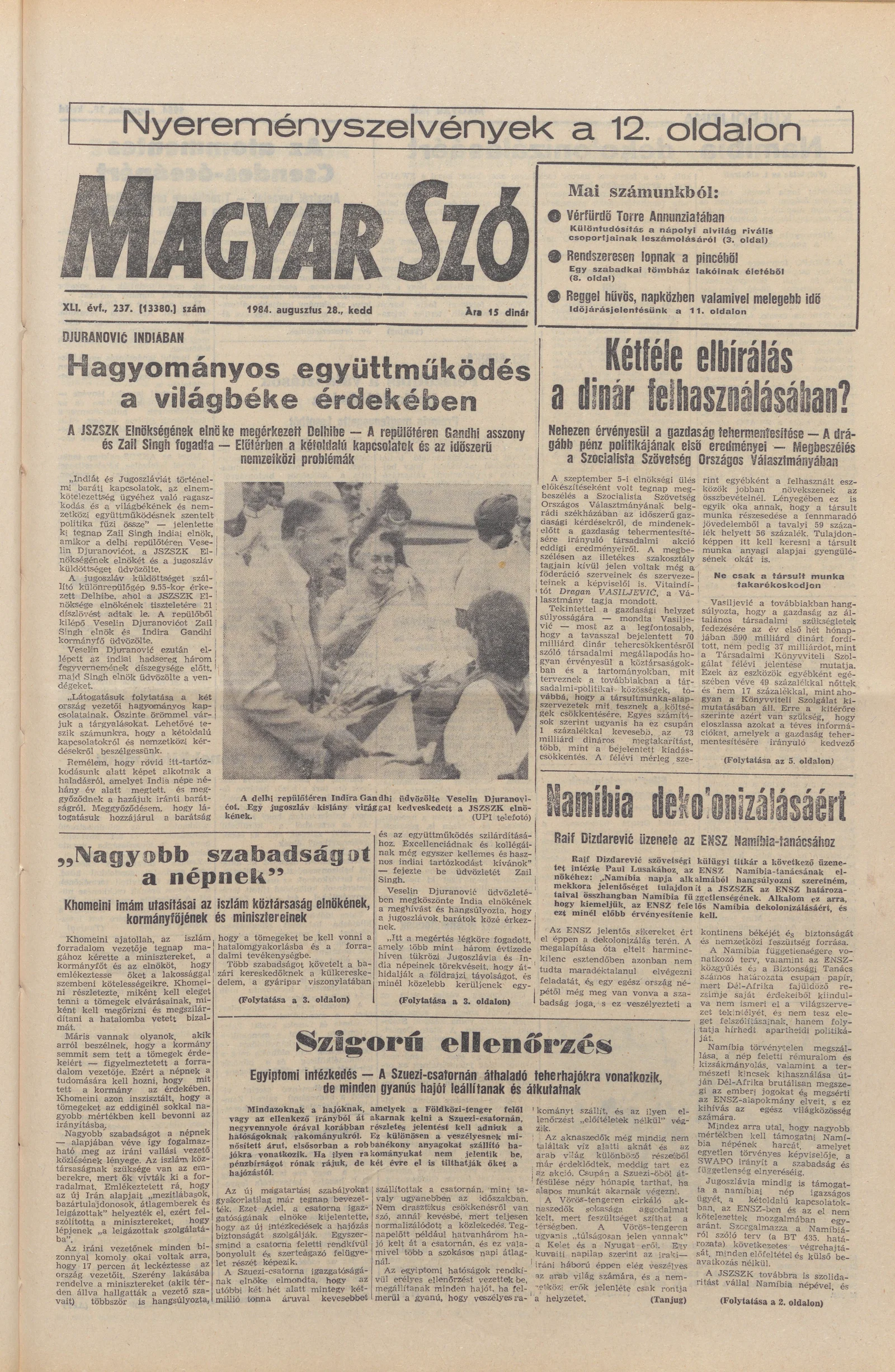 Magyar Szó, 41. évf. 1984. augusztus 28. 237. sz. 1–20. oldal