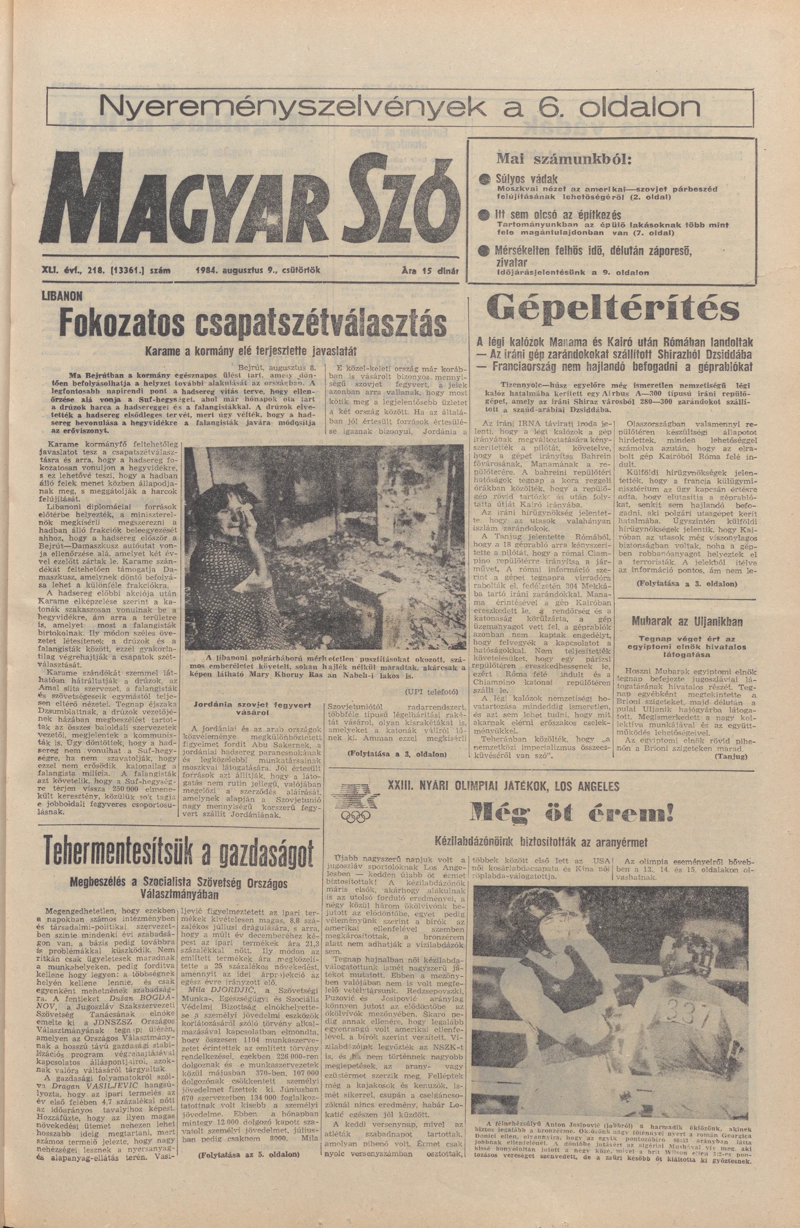 Magyar Szó, 41. évf. 1984. augusztus 9. 218. sz. 1–16. oldal