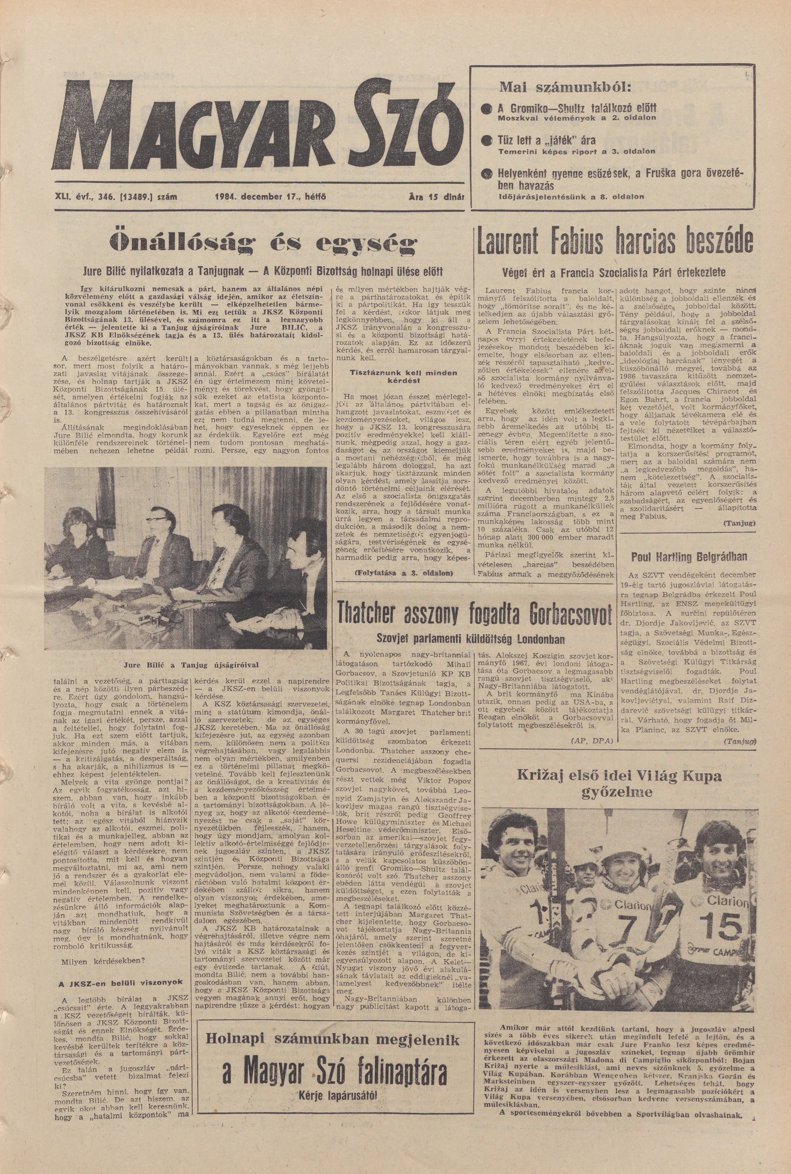 Magyar Szó, 41. évf. 1984. december 17. 346. sz. 1–8. oldal