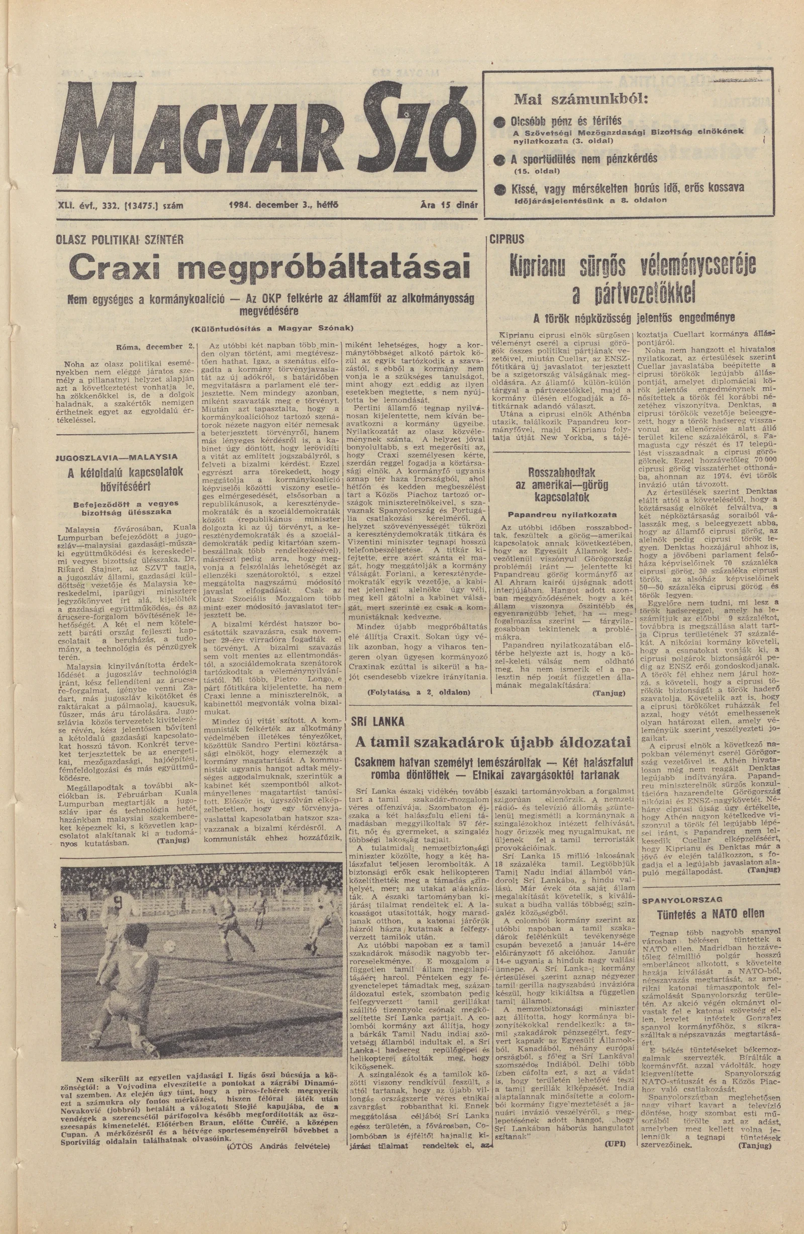 Magyar Szó, 41. évf. 1984. december 3. 332. sz. 1–8. oldal
