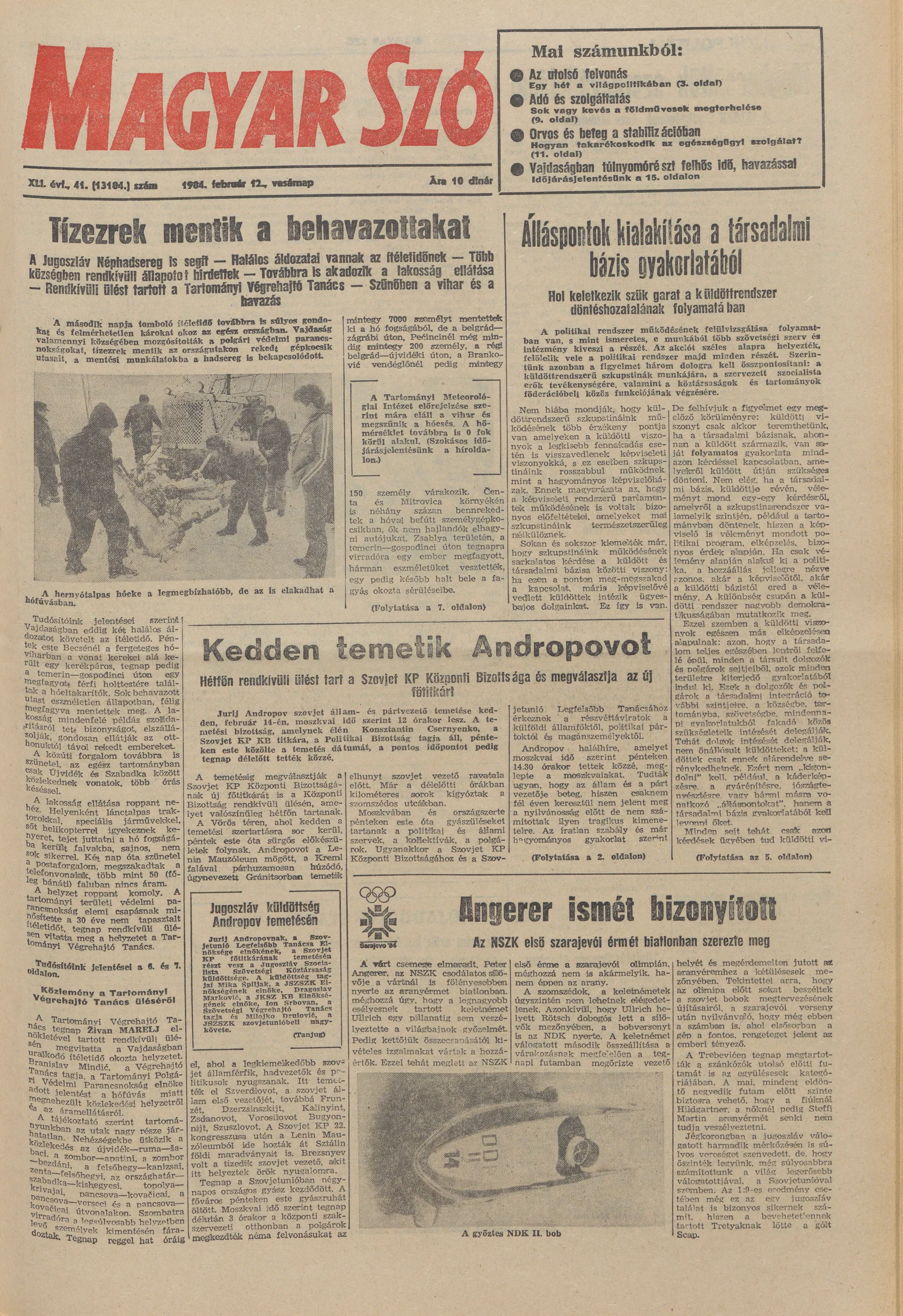 Magyar Szó, 41. évf. 1984. február 12. 41. sz. 1–32. oldal