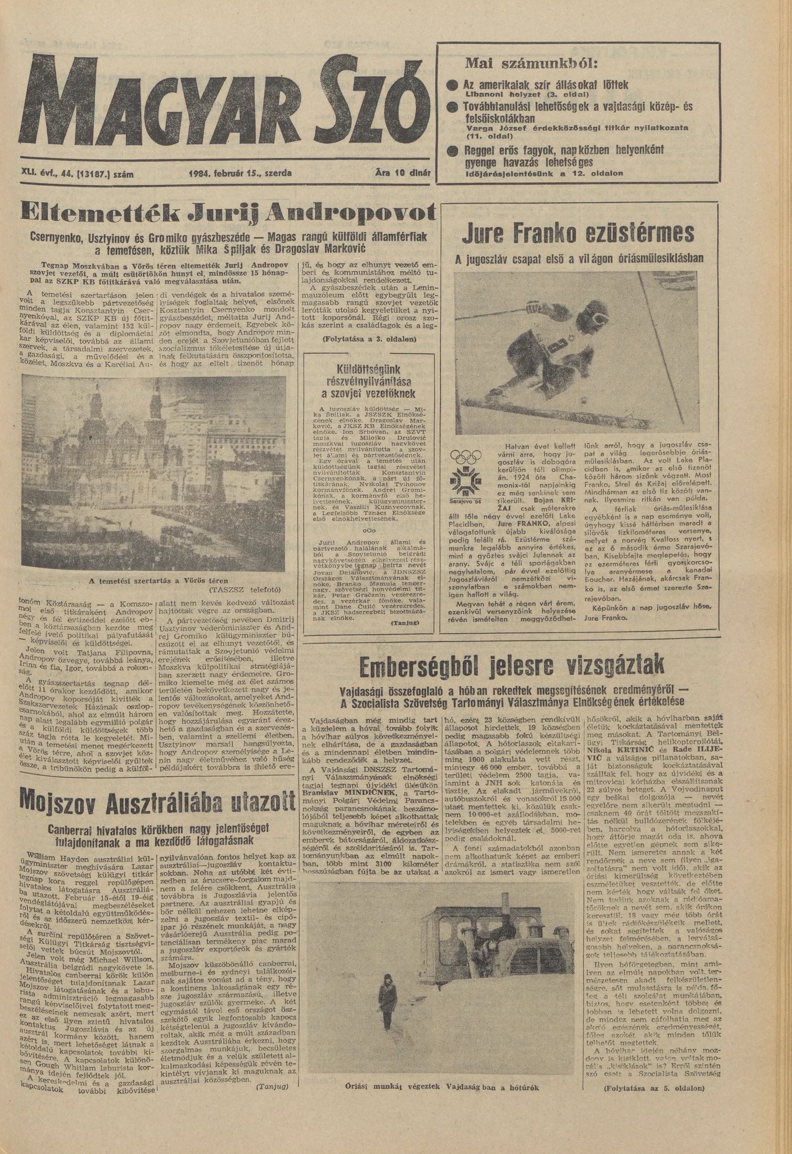 Magyar Szó, 41. évf. 1984. február 15. 44. sz. 1–24. oldal