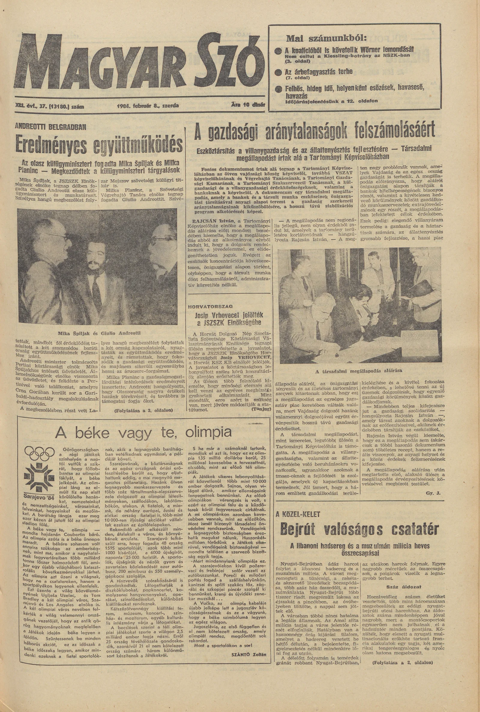 Magyar Szó, 41. évf. 1984. február 8. 37. sz. 1–24. oldal