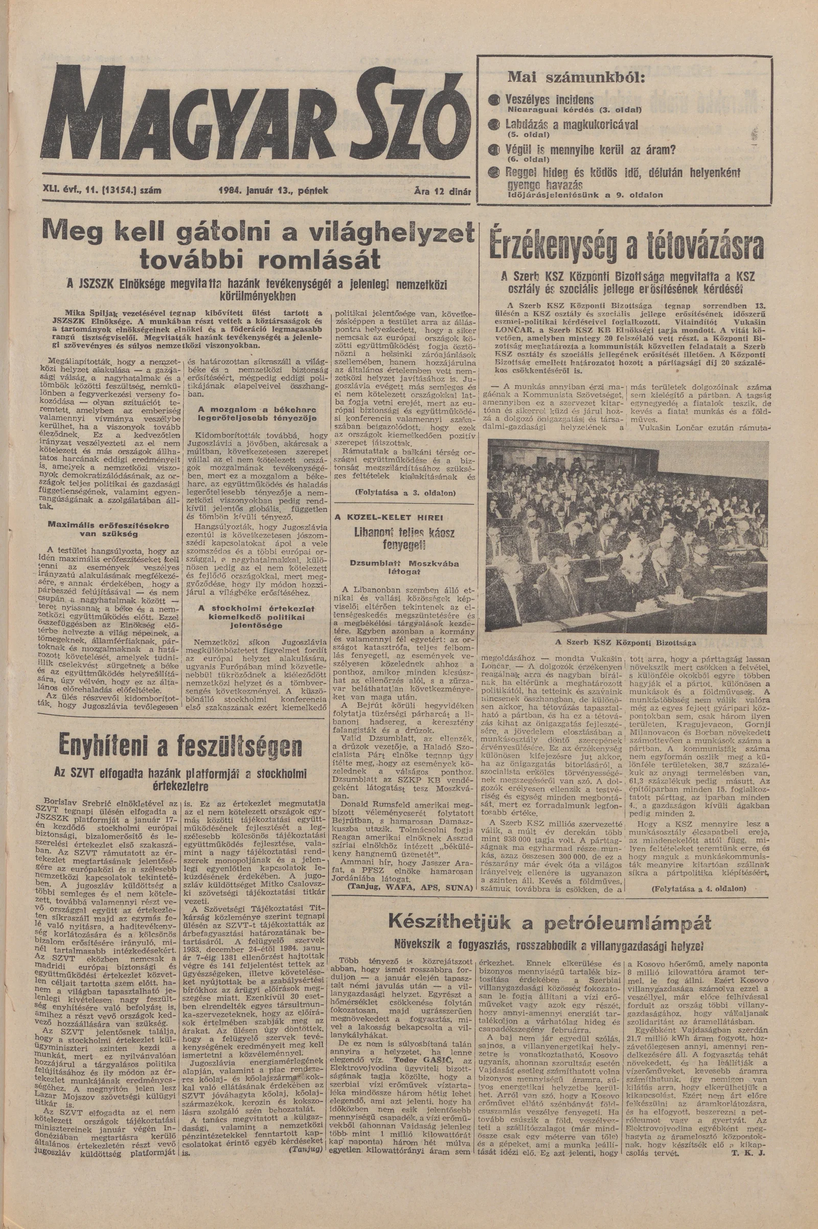 Magyar Szó, 41. évf. 1984. január 13. 11. sz. 1–20. oldal