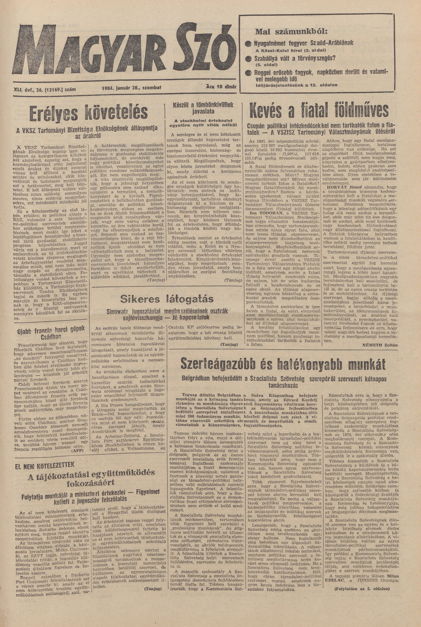 Magyar Szó, 41. évf. 1984. január 28. 26. sz. 1–24. oldal