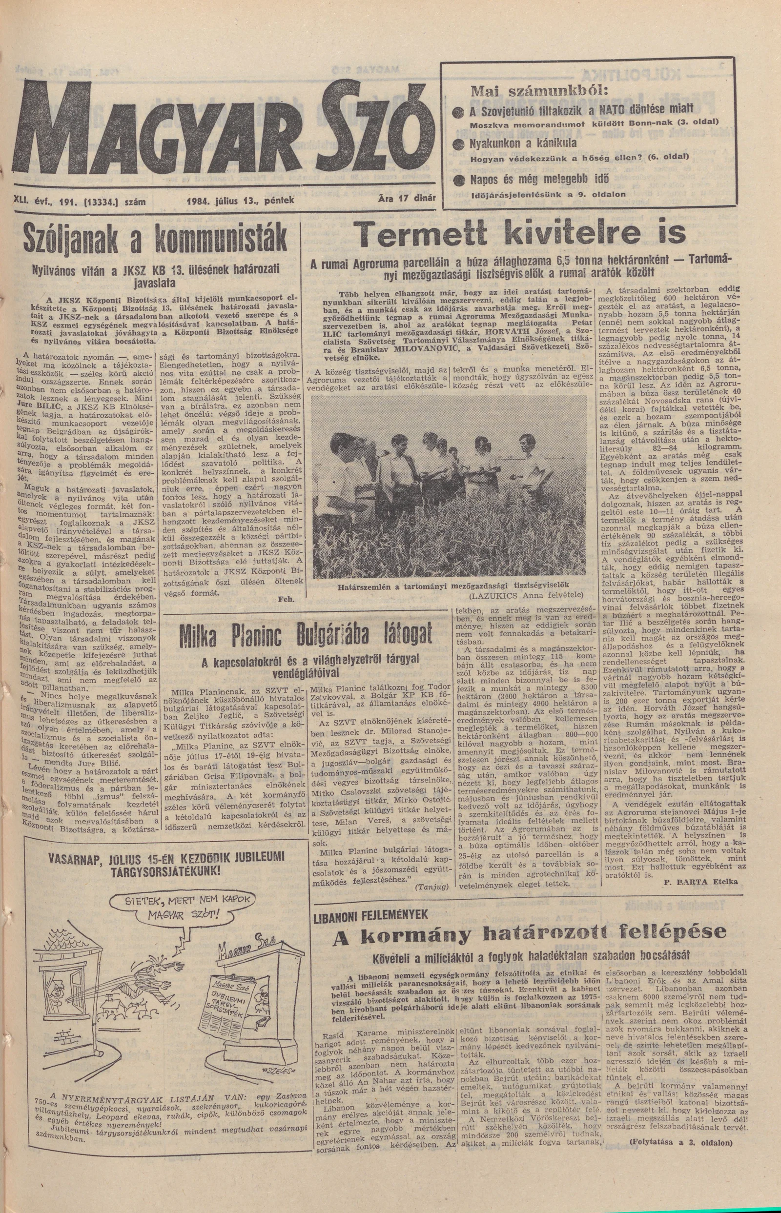 Magyar Szó, 41. évf. 1984. július 13. 191. sz. 1–20. oldal