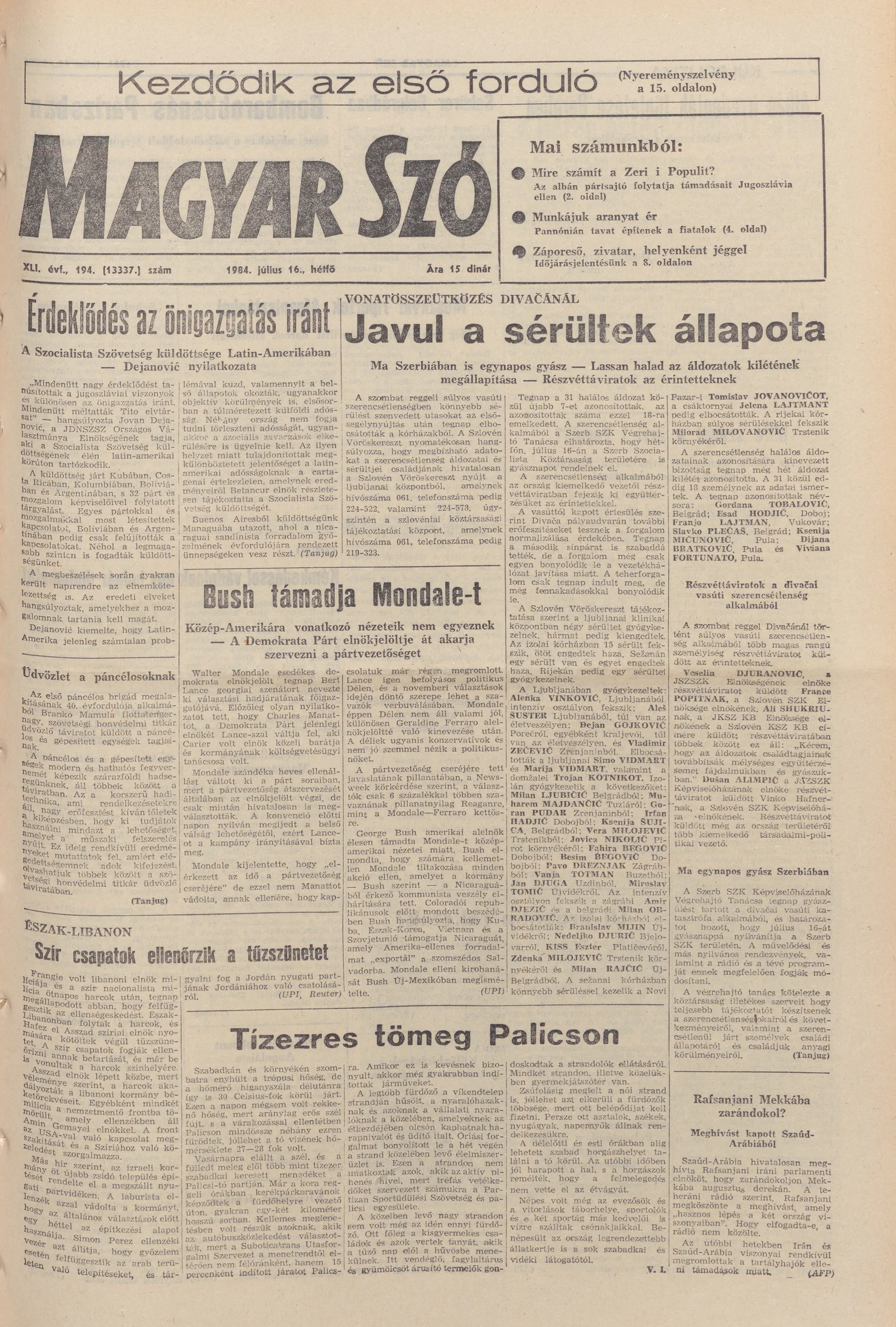 Magyar Szó, 41. évf. 1984. július 16. 194. sz. 1–8. oldal