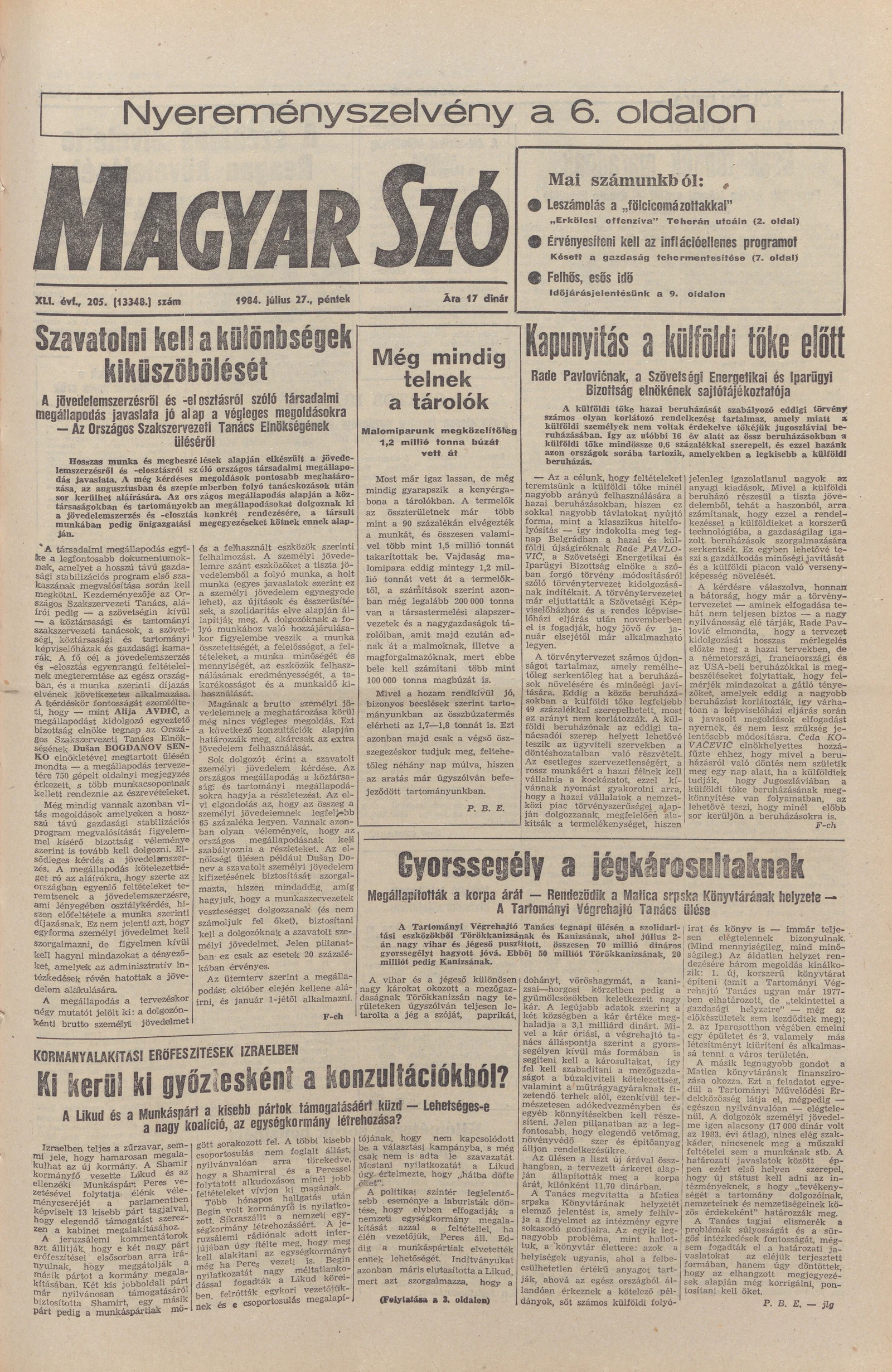 Magyar Szó, 41. évf. 1984. július 27. 205. sz. 1–20. oldal