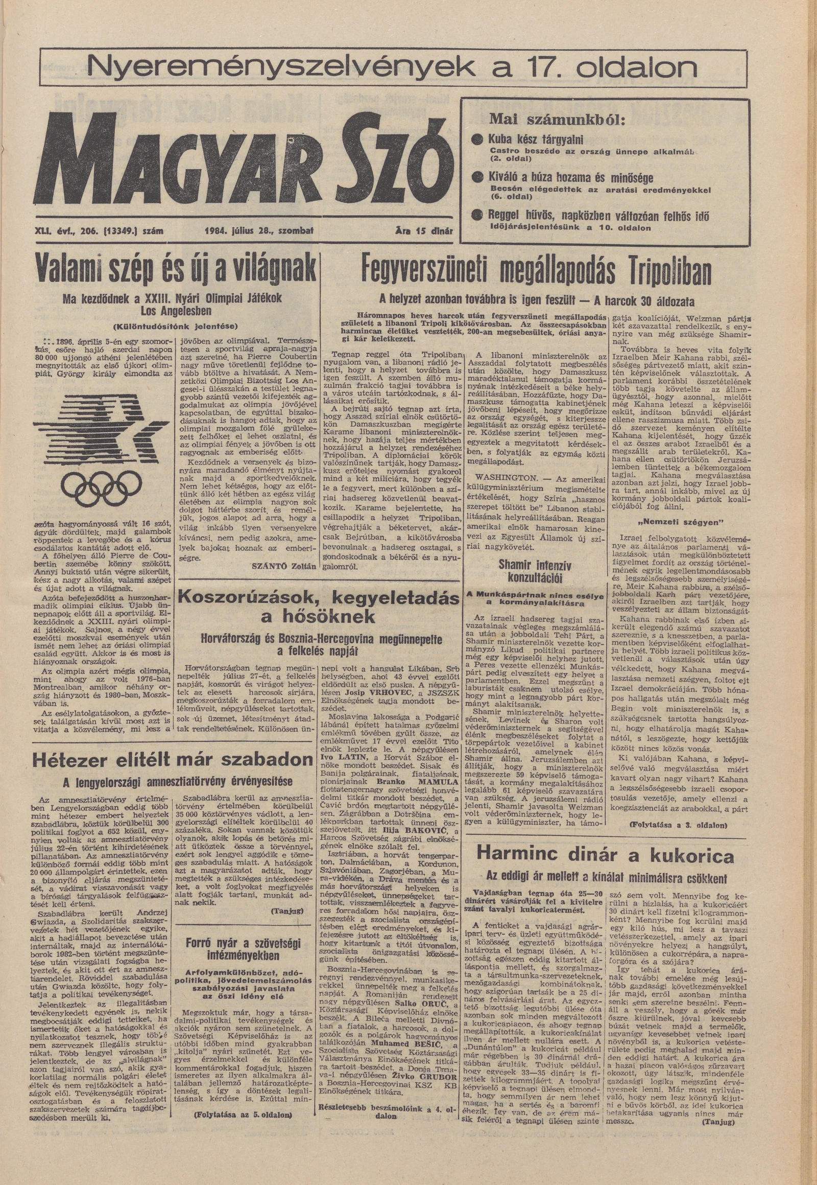 Magyar Szó, 41. évf. 1984. július 28. 206. sz. 1–20. oldal