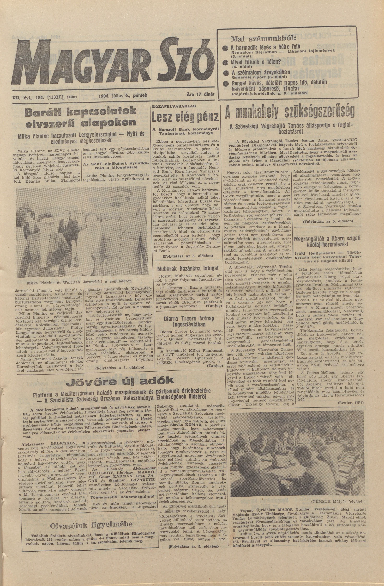 Magyar Szó, 41. évf. 1984. július 6. 184. sz. 1–20. oldal