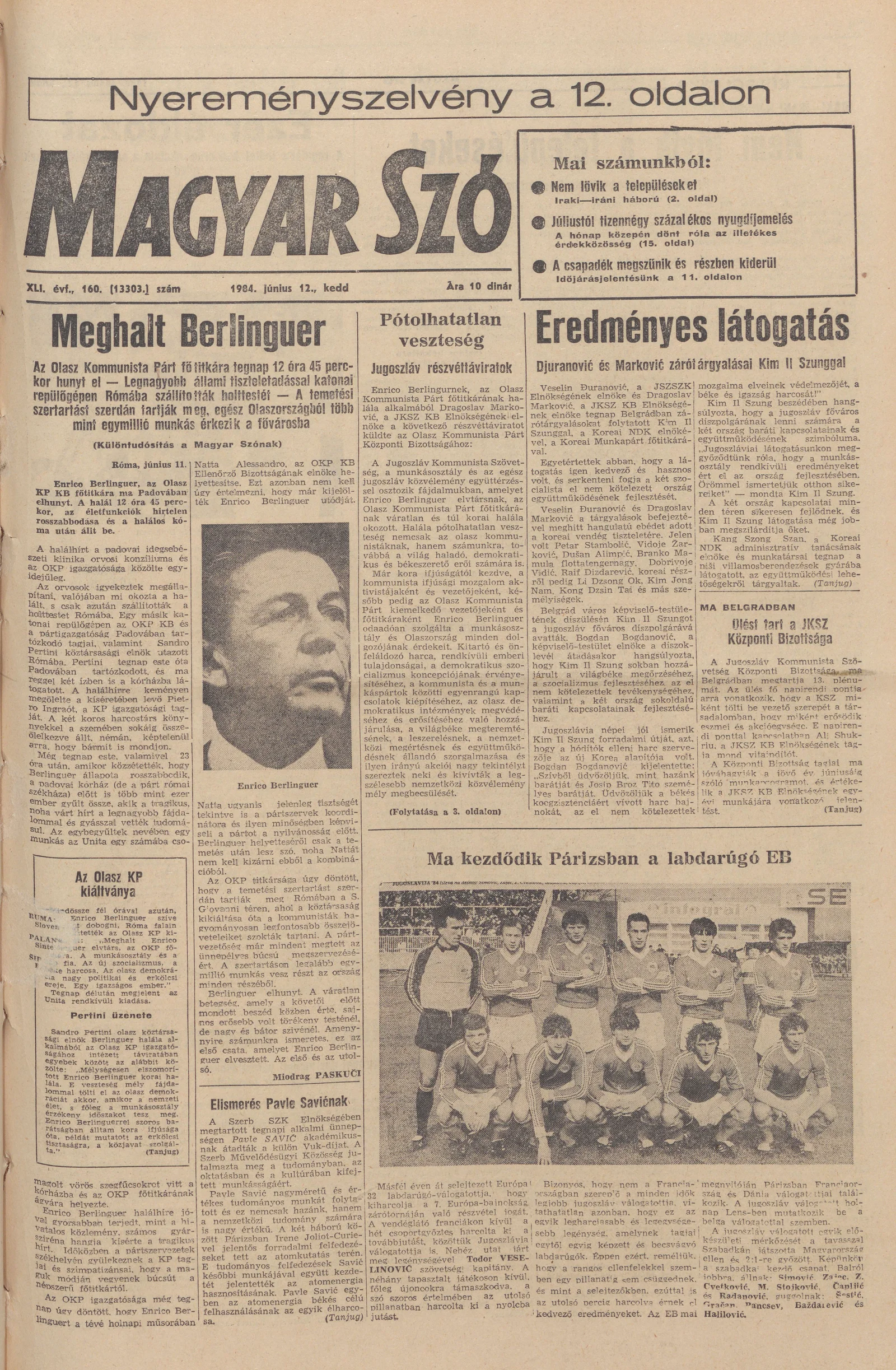 Magyar Szó, 41. évf. 1984. június 12. 160. sz. 1–20. oldal