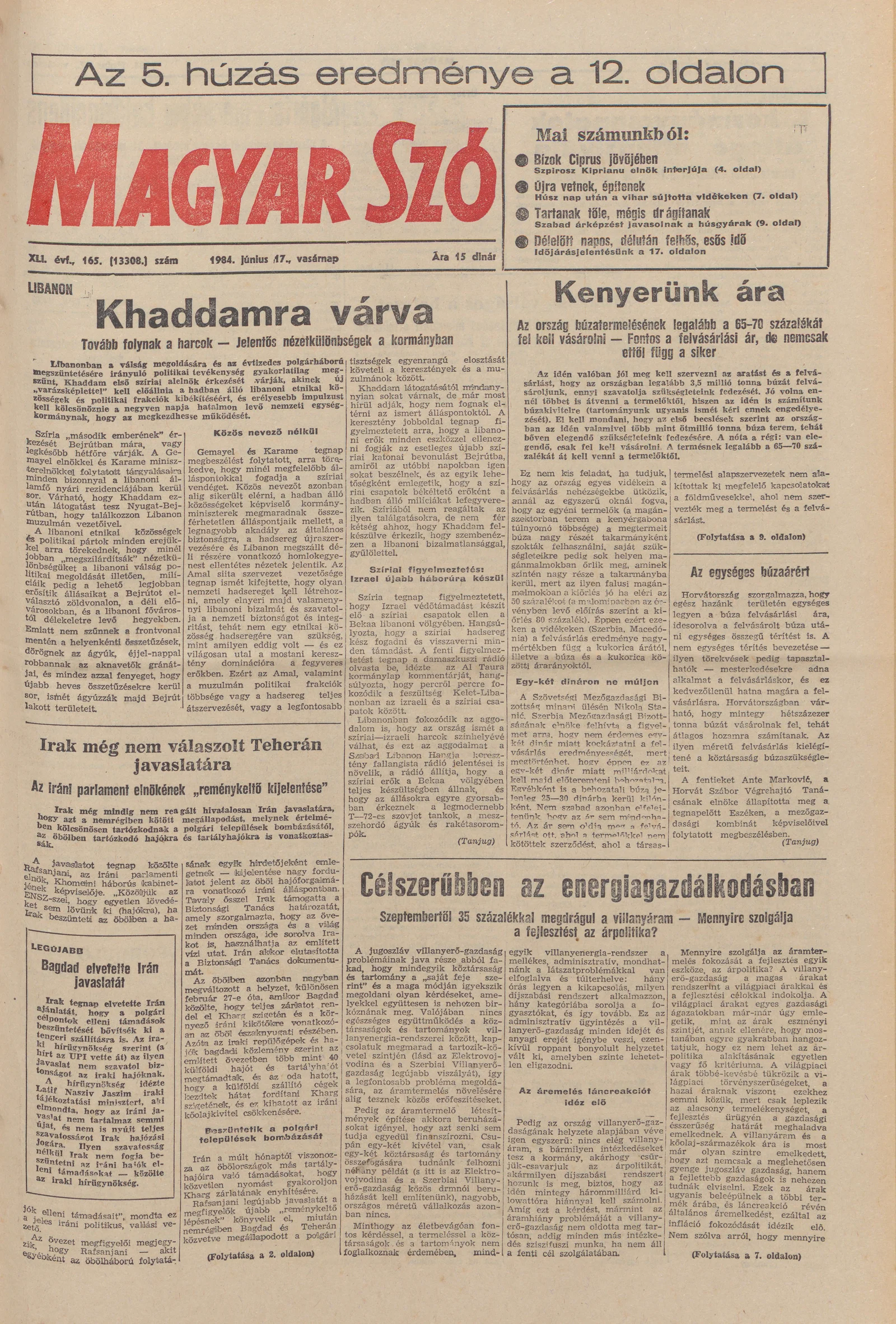 Magyar Szó, 41. évf. 1984. június 17. 165. sz. 1–32. oldal
