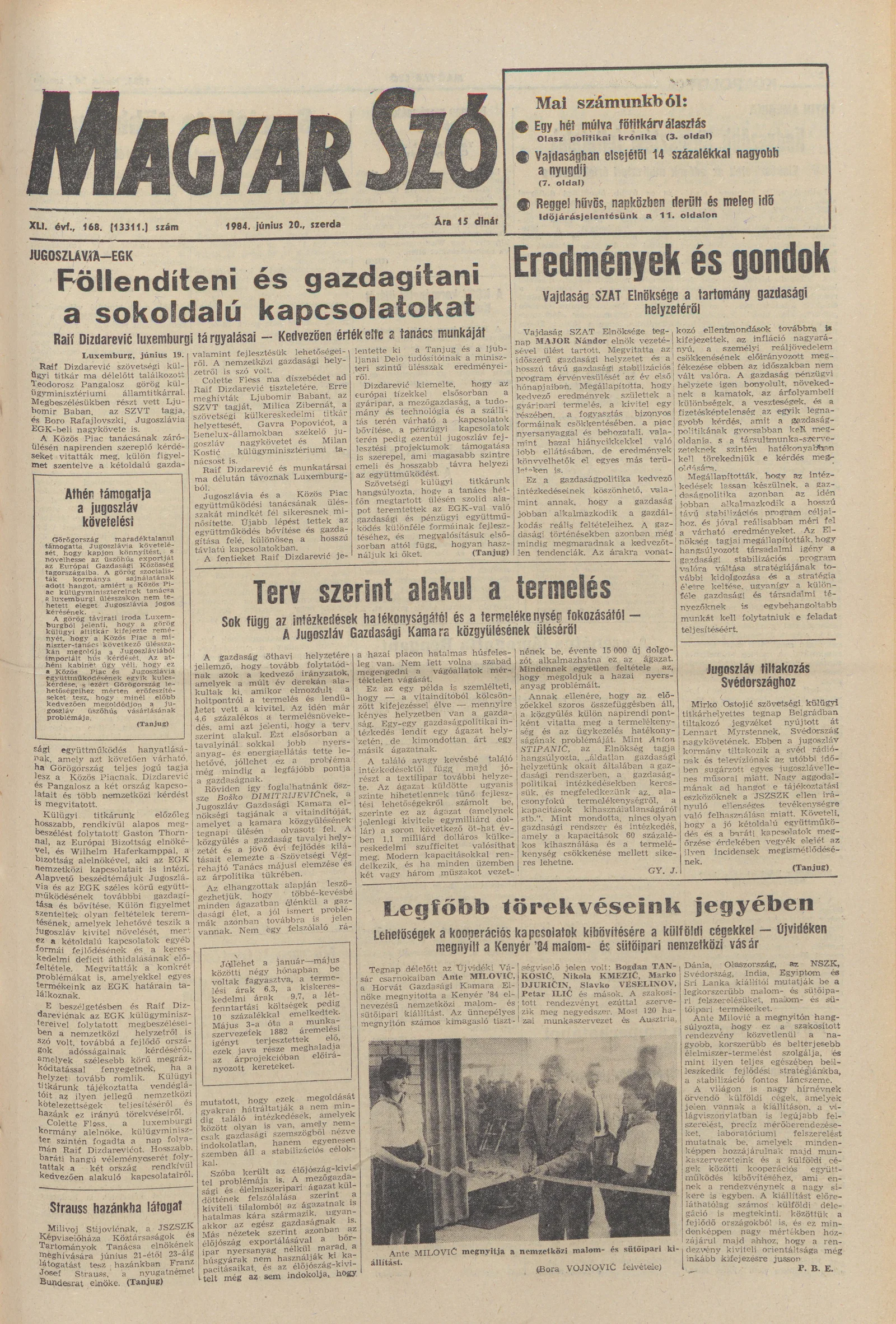 Magyar Szó, 41. évf. 1984. június 20. 168. sz. 1–16. oldal